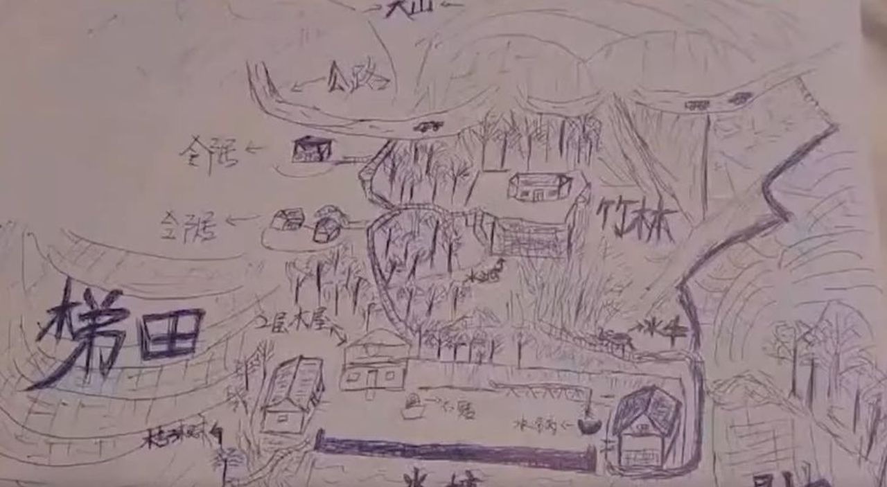 หลี่ใช้วิธีวาดแผนที่ของหมู่บ้านตามความทรงจำในวัยเด็ก แล้วโพสต์ลงแอปแชร์วิดีโอ Douyin หรือ TikTok เมื่อวันที่ 24 ธันวาคม 2564 แผนที่แสดงสภาพบ้านเรือนและสถานที่ในหมู่บ้านของเขา เช่น อาคารที่เขาบอกว่าน่าจะเป็นโรงเรียน, ป่าไผ่, สระน้ำขนาดเล็ก และยังมีรายละเอียดว่าบ้านหลังต่างๆ เป็นอย่างไร รวมถึงวิธีที่ชาวบ้านใช้ถังไม้ขนาดใหญ่ในการหุงข้าว