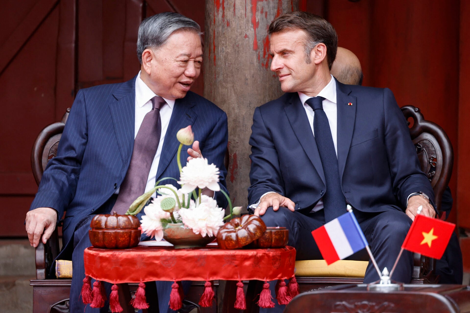 เอมมานูเอล มาครงเรียกร้องให้เวียดนามรักษาระเบียบโลกบนพื้นฐานของกฎหมาย ในการเดินทางเยือนเอเชียตะวันออกเฉียงใต้ซึ่งเป็นภูมิภาคที่ได้รับผลกระทบจากการเผชิญหน้าระหว่างสหรัฐฯ และจีน