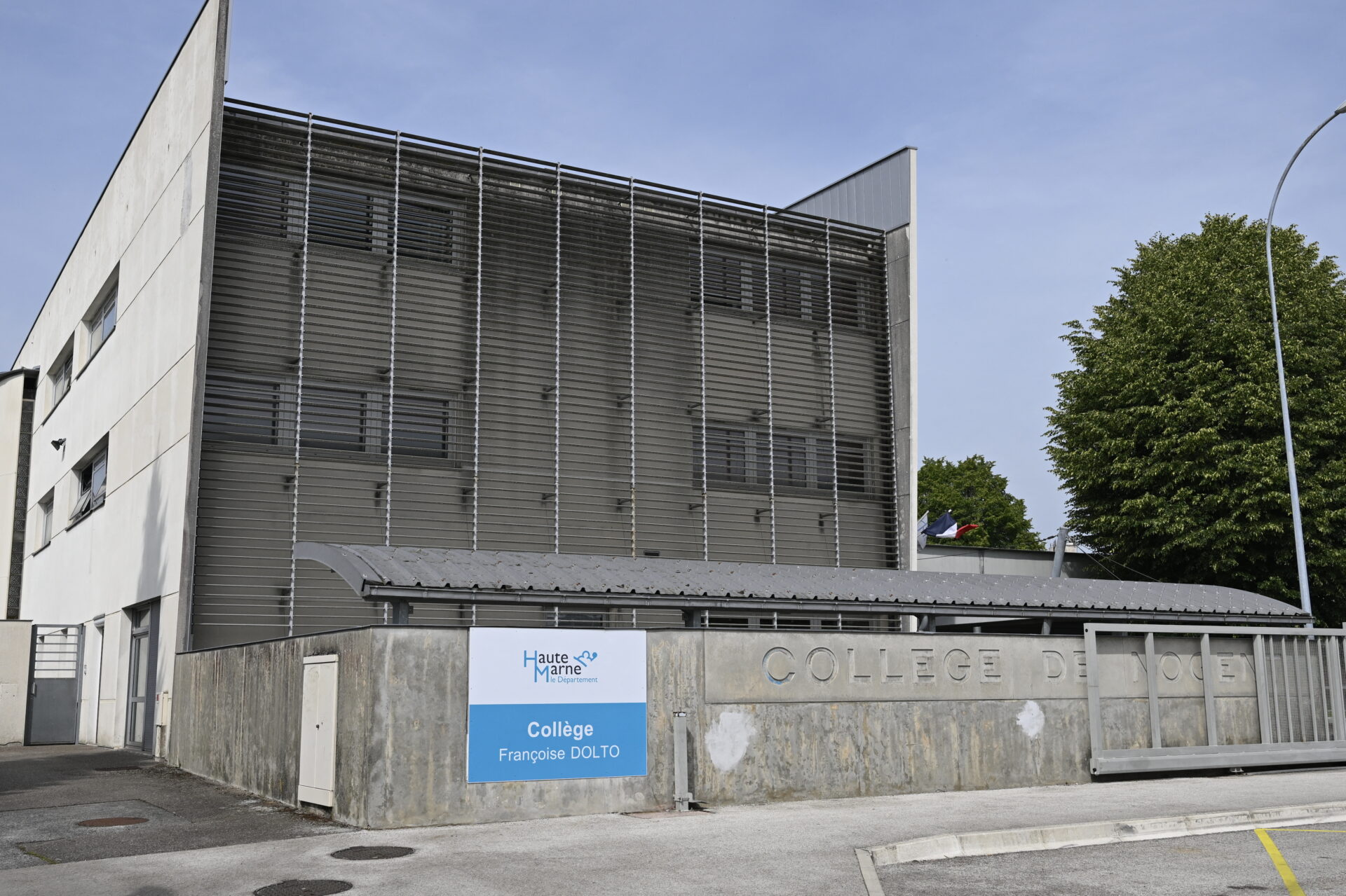 โรงเรียนมัธยม Francoise Dolto ในเมืองโนฌองต์ ทางตะวันออกของฝรั่งเศส ซึ่งเป็นที่เกิดเหตุนักเรียนใช้อาวุธมีดแทงผู้ช่วยครูจนเสียชีวิต เมื่อวันที่ 10 มิถุนายน (Photo by Jean-Christophe VERHAEGEN / AFP)