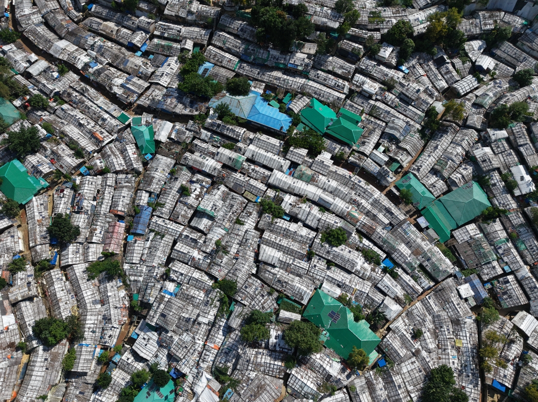 ภาพมุมสูงล่าสุดแสดงให้เห็นค่ายผู้ลี้ภัยชาวโรฮิงญาอูเคีย ปัจจุบันบังกลาเทศให้ที่พักพิงแก่ชาวโรฮิงญาที่ถูกบังคับให้พลัดถิ่นจากเมียนมาจำนวน 1.3 ล้านคน โดยเฉพาะค่ายผู้ลี้ภัยที่ค็อกซ์บาซาร์ ได้ชื่อว่าเป็นค่ายผู้ลี้ภัยที่ใหญ่ที่สุดในโลก – Photo by Piyas Biswas / AFP