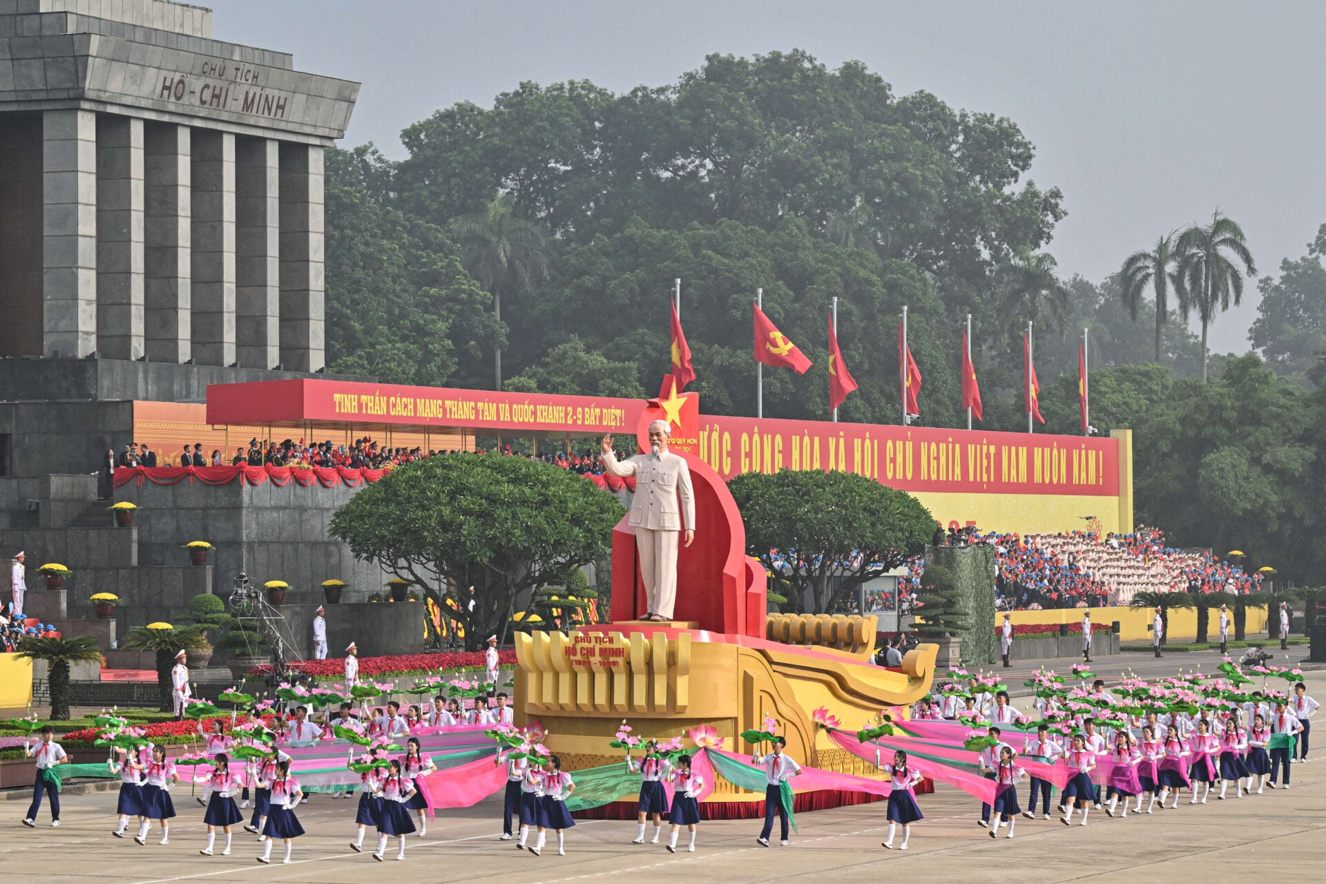 ทหารและพลเรือนราว 40,000 คนเริ่มเดินขบวนในเมืองหลวงฮานอยหลังรุ่งสาง เพื่อเฉลิมฉลองวันที่โฮจิมินห์ นักปฏิวัติคอมมิวนิสต์ ประกาศอิสรภาพจากการปกครองของฝรั่งเศสในปี 1945