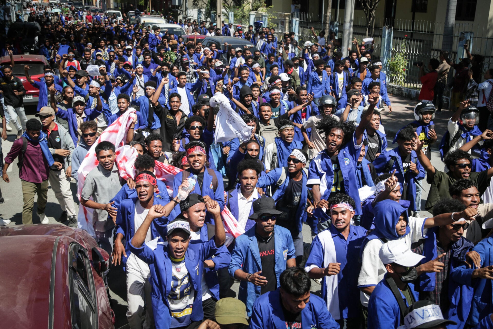 ประชาชนกว่า 2,000 คนซึ่งส่วนใหญ่เป็นนักศึกษาจากมหาวิทยาลัยหลายแห่งในเมืองหลวงดิลี รวมตัวกันใกล้รัฐสภาแห่งชาติ เพื่อประท้วงแผนการจัดหารถยนต์ให้กับสมาชิกรัฐสภาทั้ง 65 คน