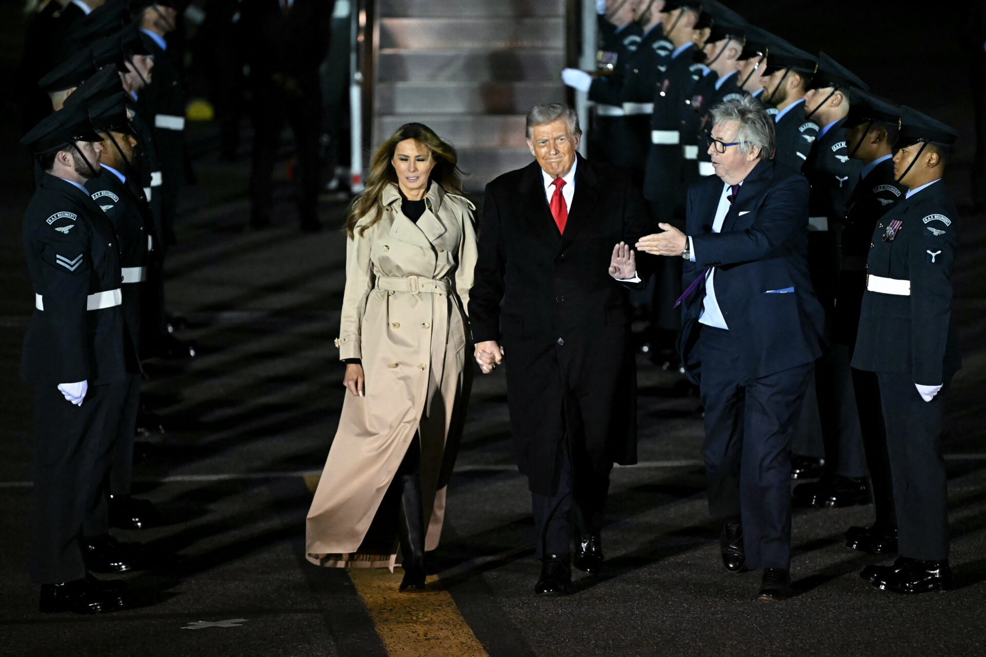 เพื่อเป็นสัญญาณบ่งบอกถึงความโอ่อ่าตระการตาและพิธีการที่กำลังจะมาถึง กองทหารเกียรติยศได้ต้อนรับครอบครัวทรัมป์ขณะที่พวกเขาก้าวลงจากเครื่องบินแอร์ ฟอร์ซ วัน ที่สนามบินสแตนสเต็ด ใกล้กรุงลอนดอน