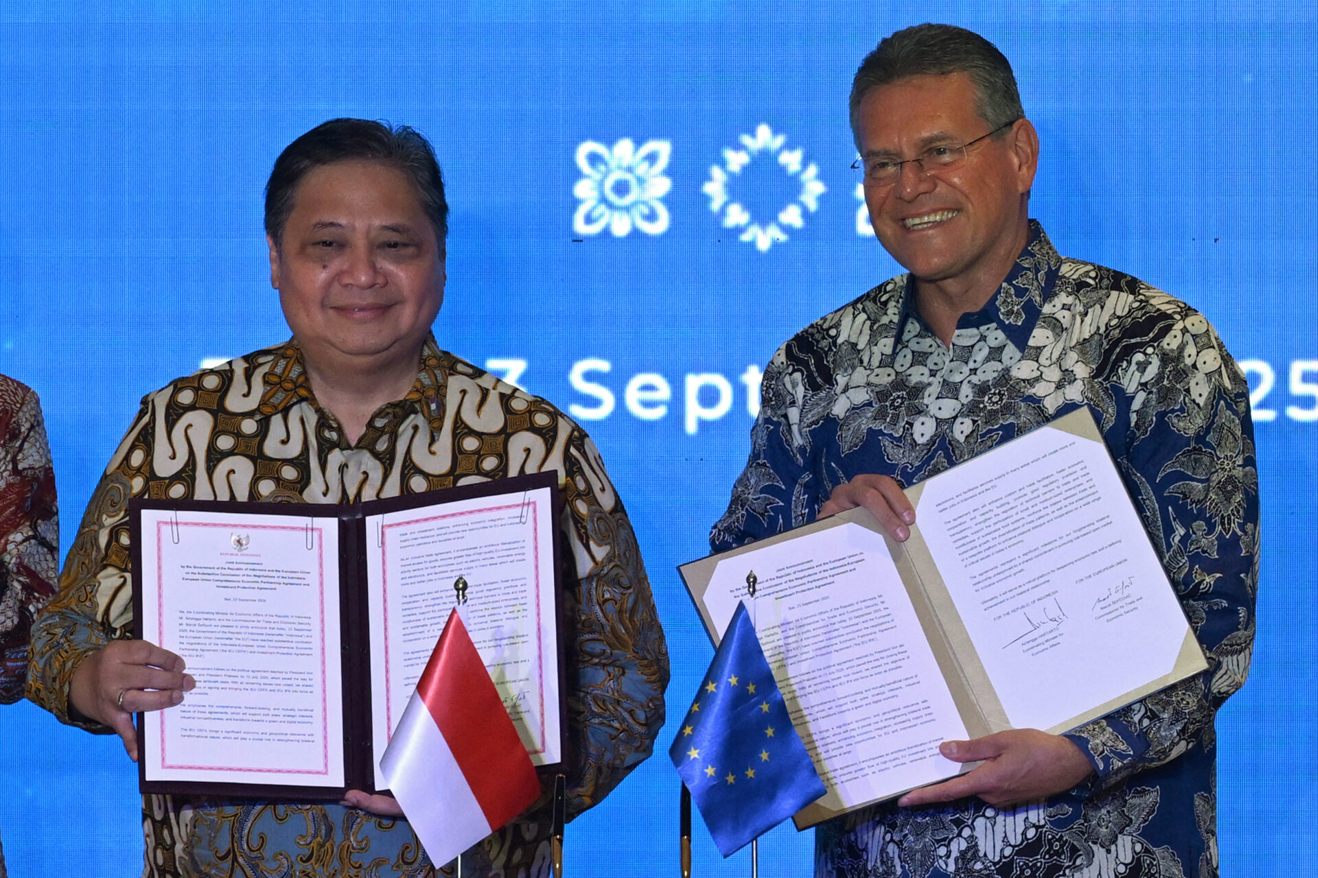 เอเอฟพีรายงาน เมื่อวันอังคารที่ 23 กันยายน 2568 กล่าวว่า ข้อตกลงหุ้นส่วนทางเศรษฐกิจที่ครอบคลุมระหว่างอินโดนีเซียและสหภาพยุโรป (CEPA) เป็นข้อตกลงฉบับที่สามที่อียูได้ลงนามกับประเทศในเอเชียตะวันออกเฉียงใต้ ต่อจากสิงคโปร์และเวียดนาม