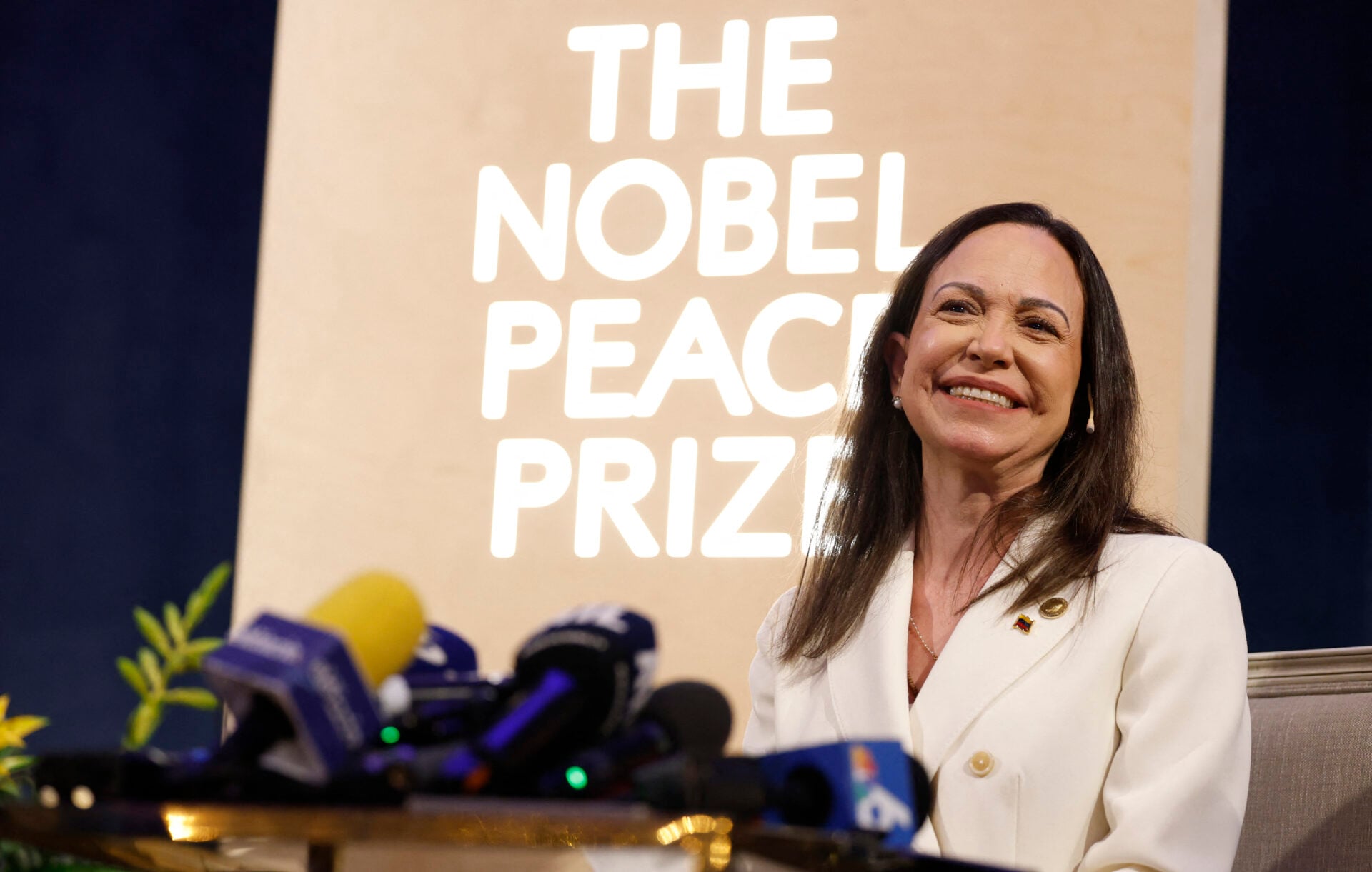 มาชาโดได้รับรางวัลโนเบลสาขาสันติภาพจากคณะกรรมการโนเบล จากความพยายามของเธอในการนำไปสู่ “การเปลี่ยนผ่านอย่างสันติจากระบอบเผด็จการสู่ประชาธิปไตย” ในประเทศบ้านเกิดของเธอ