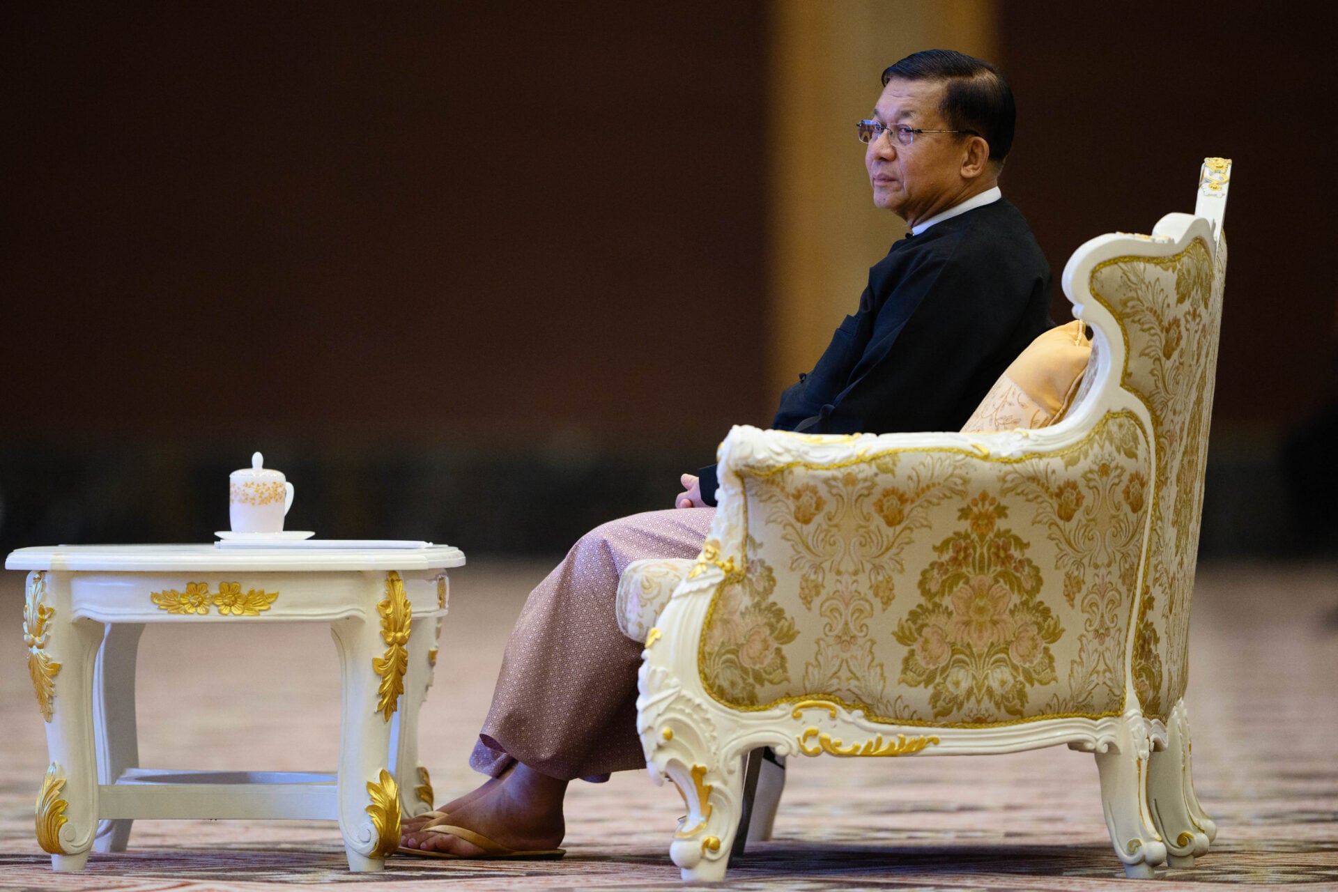 มิน อ่อง หล่าย ผู้โค่นล้มประชาธิปไตยในปี 2021 ด้วยการจับกุมออง ซาน ซู จี ผู้นำที่มาจากการเลือกตั้งและยุบพรรคของเธอ ได้รับการแต่งตั้งจากสมาชิกรัฐสภาที่สนับสนุนกองทัพ ซึ่งได้รับการเลือกตั้งภายใต้การกำกับดูแลของคณะรัฐบาลทหารที่เขาควบคุมอยู่