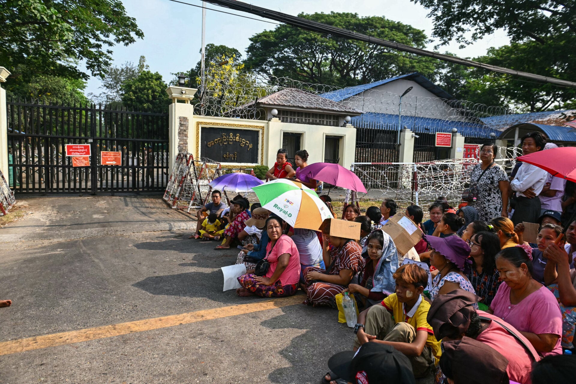 นอกรั้วลวดหนามของเรือนจำอินเส่งในย่างกุ้ง กลุ่มครอบครัวจำนวนมากรอคอยท่ามกลางอากาศร้อนจัดเพื่อฟังว่าญาติของพวกเขาที่ถูกจำคุกจะได้รับการอภัยโทษหรือไม่