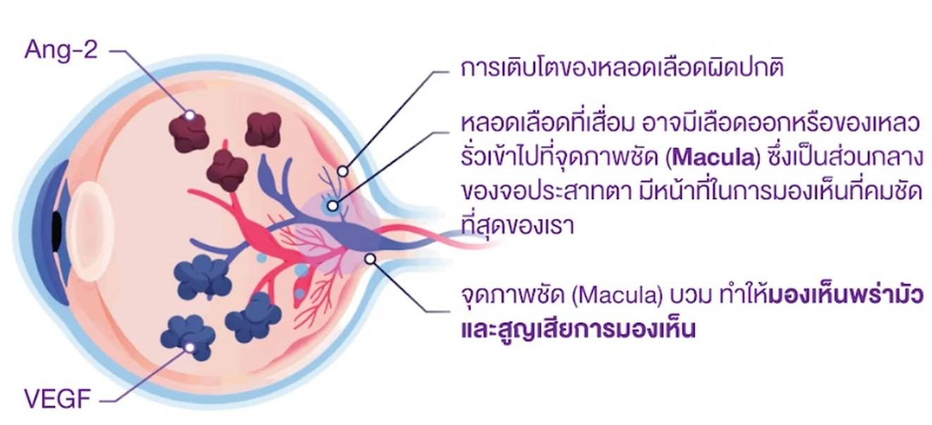“หนึ่งในโรคที่ต้องระวังคือ โรคจอตาเสื่อมชนิดเปียก (nAMD) ซึ่งเกิดจากเส้นเลือดผิดปกติใต้จอตา ทำให้รั่วหรือแตกจนการมองเห็นแย่ลงอย่างรวดเร็ว หากมีอาการตามัวหรือเห็นจุดดำลอย ควรพบจักษุแพทย์ทันที ปัจจุบันมีวิธีรักษาหลายทาง เช่น 1.ฉีดยาเข้าวุ้นตา ลดการงอกและรั่วของเส้นเลือด โดยนวัตกรรมใหม่สามารถออกฤทธิ์ได้นานและลดการอักเสบได้ดีขึ้น 2.เลเซอร์ ช่วยชะลอโรค แม้ไม่ฟื้นฟูการมองเห็นได้มาก และ3.ผ่าตัด พิจารณาเฉพาะรายตามดุลยพินิจแพทย์ การเลือกวิธีรักษาขึ้นอยู่กับความรุนแรงของโรคในแต่ละราย” ศ. พญ.ภารดี กล่าว