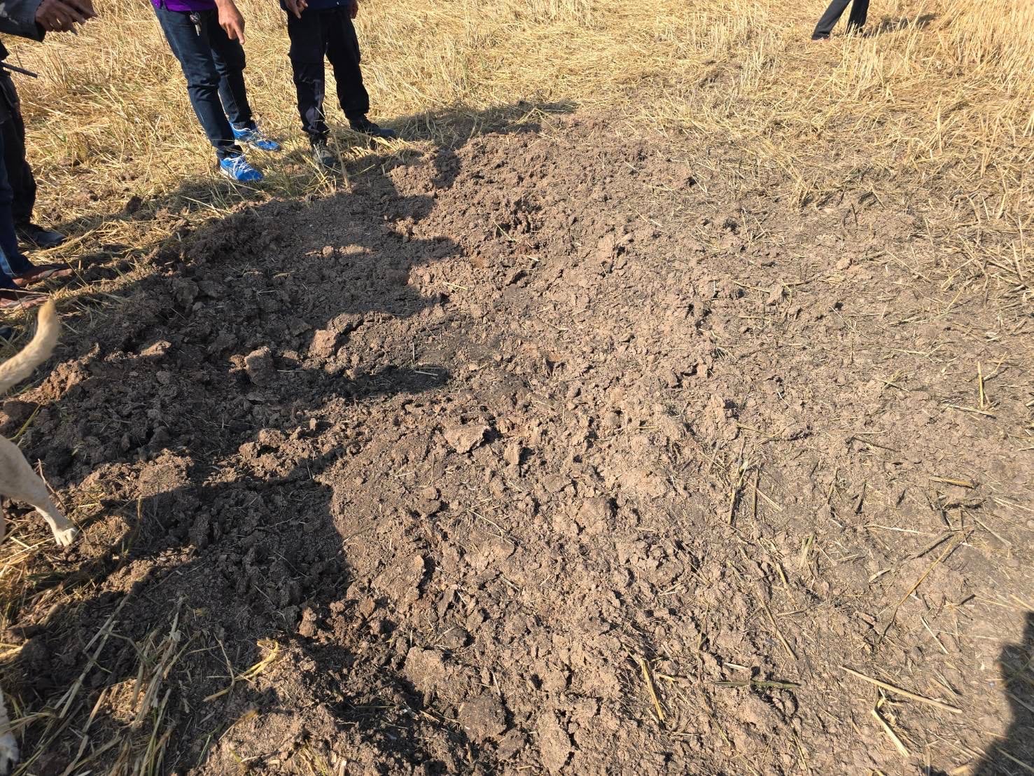 ผู้สื่อข่าวลงพื้นที่ตรวจสอบที่บ้านหว้า หมู่ 7 ต.เขาดินเหนือ อ.บ้านกรวด จุดที่ผู้นำแจ้งว่ามีลูกจรวดตกในพื้นที่ จากการตรวจสอบพบบริเวณที่นาของชาวบ้านเป็นหลุมดินขนาดใหญ่ พบสะเก็ดระเบิดกระเด็นไปโดนต้นไม้บริเวณโดยรอบอย่างเห็นได้ชัด