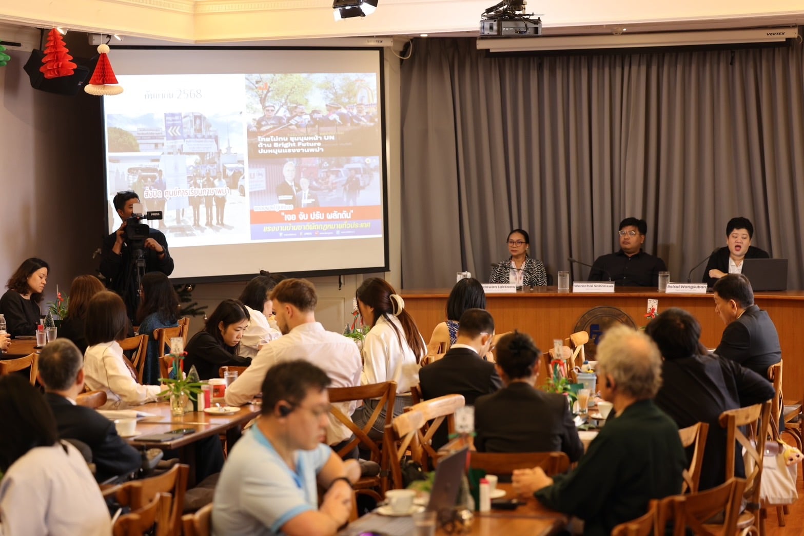 โดย””น.ส. โรยทราย วงศ์สุบรรณ จากเครือข่ายประชากรข้ามชาติ” ได้สรุปภาพรวมสถานการณ์แรงงานข้ามชาติในปี 2568 พร้อมประเด็นเด่นเรื่องการจัดการปัญหาภัยพิบัติ ภัยสงคราม และการจับตาสถานการณ์การเลือกตั้งครั้งใหม่ที่เกี่ยวเนื่องกับแรงงานข้ามชาติในประเทศไทย โดยระบุว่า ตลอดปี 2568 มีการเปลี่ยนรัฐมนตรีว่าการกระทรวงแรงงานถึง 3 คน แต่กลับไม่ได้มีนโยบายใด ๆ ที่โดดเด่นออกมาเลย ในการช่วยแก้ปัญหาที่ผู้ประกอบการไทย นายจ้าง หรือตัวแรงงานข้ามชาติกำลังเผชิญอยู่ ไม่ว่าจะเป็นผลกระทบทางเศรษฐกิจและสังคม เช่น กรณีตึกสตง.ถล่ม, กรณีแรงงานกัมพูชาเดินทางกลับประเทศจนส่งผลกระทบต่ออุตสาหกรรมอ้อย ลำไย ก่อสร้าง, หรือกรณีที่ดีเอสไอจับกุมคอร์รัปชันในการขึ้นทะเบียนเอกสาร ซึ่งสิ่งเหล่านี้ส่งผลกระทบต่อผู้ประกอบการไทยอย่างมาก และสิ่งที่เห็นได้ชัดในปีนี้คือวิกฤตที่เกิดจากภัยพิบัติและเหตุการณ์ไม่คาดคิด ไม่ว่าจะเป็นกรณีตึกสำนักงานตรวจเงินแผ่นดินถล่ม ความขัดแย้งระหว่างไทย-กัมพูชา ที่ทำให้แรงงานกัมพูชากลับประเทศหลักแสนคน และล่าสุดคือน้ำท่วมหาดใหญ่ ซึ่งเป็นพื้นที่จ้างงานสูงในอุตสาหกรรมยางพารา ก่อสร้าง บริการ หรือโรงงานอาหารทะเล ปัญหาคือแม้แรงงานข้ามชาติจะต้องอยู่ในระบบประกันสังคม แต่ความเป็นจริงคือเอกสารการจ้างงานระหว่างแรงงาน นายจ้างตัวจริง และนายหน้า มักจะไม่ตรงกัน ทำให้แรงงานจำนวนมากเข้าไม่ถึงสวัสดิการประกันสังคมและการเยียวยาตามกฎหมายกำหนด ทั้งกรณีผู้เสียชีวิต หรือพิการจากตึกสตง.ถล่ม หรือแรงงานที่ได้รับผลกระทบจากการหยุดงานในช่วงน้ำท่วมหาดใหญ่
