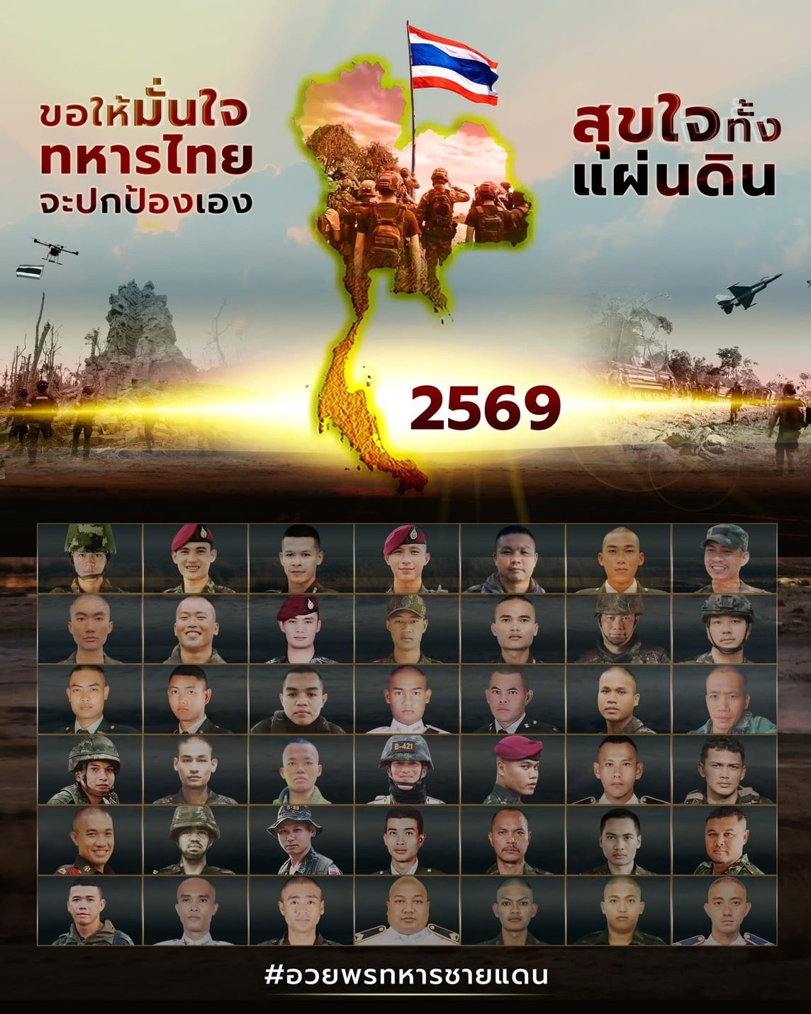 จากความกล้าหาญ-ความเสียสละ และการปฏิบัติหน้าที่การเป็นทหารไทยอย่างสมเกียรติ ในสงครามการสู้รบไทย-กัมพูชาทั้งสองรอบในปี 2568 ที่มีรายงานจนถึงวันที่ 29 ธ.ค. 2568 ว่ามีทหารเสียชีวิตจากการปฏิบัติหน้าที่ในช่วงการสู้รบไทย-กัมพูชารวมทั้งสิ้นประมาณ 43 คนและบาดเจ็บอีกจำนวนไม่น้อย