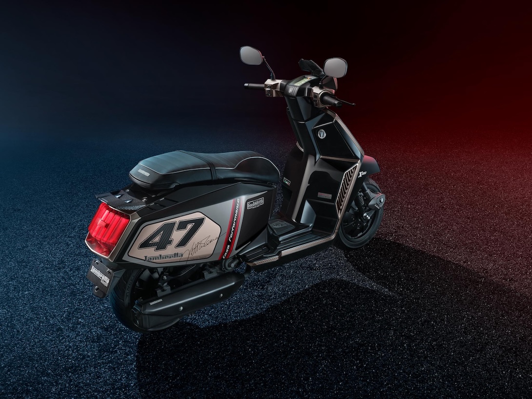 แรงบันดาลใจทั้งหมดจากความหลงใหลในการแข่งขันและสมรรถนะขั้นสูงนี้เอง จึงถูกถ่ายทอดมาอย่างชัดเจนใน LAMBRETTA X300 CASA Limited Edition ซึ่งสะท้อนผ่านดีไซน์สไตล์ Racing, การเลือกวัสดุ Carbon Fiber พิเศษ และรายละเอียดเฉพาะตัวที่ยึดโยงกับตำนานทีมแข่ง CASA LAMBRETTA อย่างเต็มเปี่ยม LAMBRETTA X300 CASA Limited Edition เป็นผลลัพธ์จากการ Collaboration ระหว่าง LAMBRETTA และ CASA LAMBRETTA อิตาลี ด้วยดีไซน์ที่ได้รับแรงบันดาลใจจากสนามแข่งโดยตรง โดดเด่นด้วยโทนสี Super Black ผสานชิ้นงาน Carbon Fiber พิเศษ ทั้ง Carbon Fiber Windscreen, Carbon Fiber Rear Spoiler และ Carbon Fiber Front Shock Cover (หรือ "ถุงเท้า" ตามที่สาวก LAMBRETTA เรียกขานกัน) เสริมด้วยเลข "47" บนฝาข้างรถ ที่สื่อถึงปี 1947 ปีแห่งการก่อตั้งตำนาน LAMBRETTA นอกจากนี้ยังเพิ่มความโดดเด่นด้วยกรอบไฟหน้า, กรอบไฟท้าย และขอบคิ้วรอบคันในโทนสี Gold Matte Chrome ที่ขับเสน่ห์ความหรูหราออกมาได้อย่างลงตัว พร้อมความทันสมัยกับหน้าจอแสดงผลแบบ TFT สีสันคมชัด และที่สำคัญ ยังมาพร้อมยางติดรถคุณภาพสูงจากแบรนด์สัญชาติอิตาลี อย่าง "Pirelli" รุ่น Angel Scooter เพื่อมอบประสบการณ์การขับขี่ที่ดีที่สุด