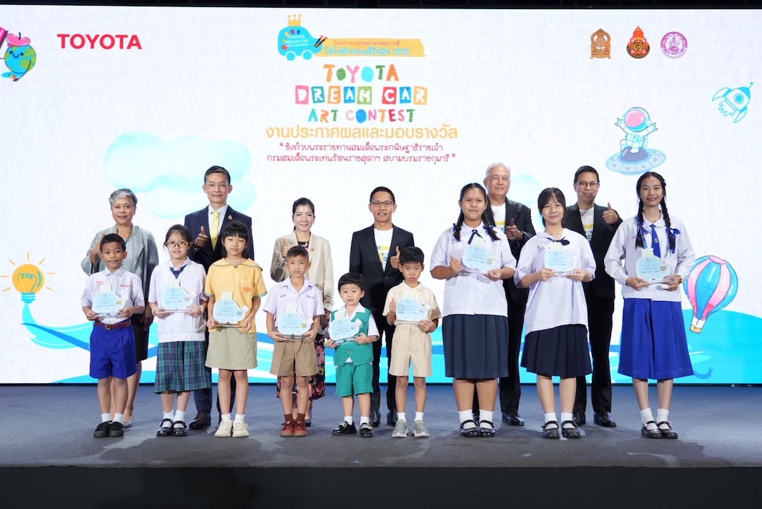 นายศุภกร รัตนวราหะ รองกรรมการผู้จัดการใหญ่ บริษัท โตโยต้า มอเตอร์ ประเทศไทย จำกัด พร้อมด้วย นางสาวพิมพ์พร ชีวานันท์ เลขานุการรัฐมนตรีว่าการกระทรวงศึกษาธิการ และนายสุรยุทธ ทวีกุลวัฒน์ ที่ปรึกษารัฐมนตรีว่าการกระทรวงการพัฒนาสังคมและความมั่นคงของมนุษย์ ร่วมกันมอบรางวัลแก่ผู้ชนะการประกวดภาพวาดระบายสีในโครงการ “โตโยต้า รถยนต์ในฝัน” “TOYOTA Dream Car Art Contest 2025” เมื่อวันที่ 10 มิถุนายน 2568 ณ TOYOTA ALIVE ถ.บางนา-ตราด กม. 3