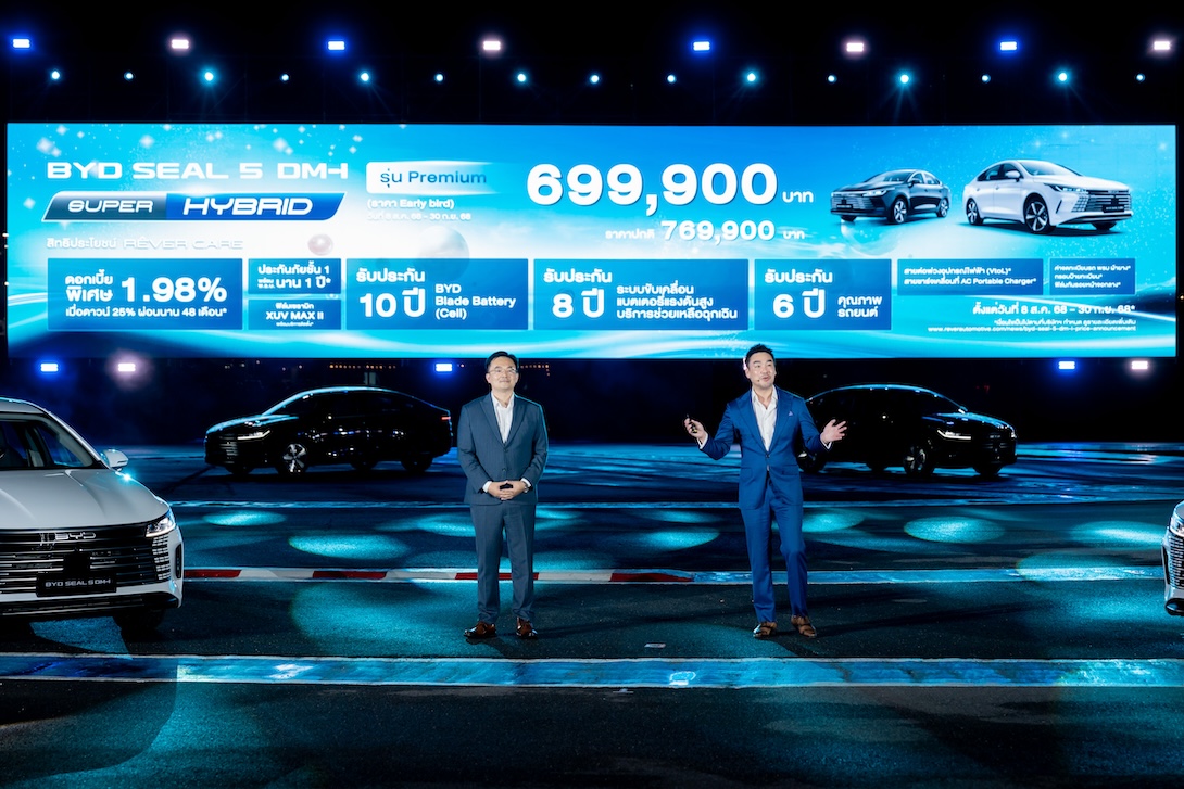 บริษัท เรเว่ ออโตโมทีฟ จำกัด ผู้จัดจําหน่ายและให้บริการหลังการขายรถยนต์พลังงานใหม่ BYD และ DENZA อย่างเป็นทางการในประเทศไทย ภายใต้กลุ่มธุรกิจเรเว่ จัดงานแถลงข่าวเปิดตัว BYD SEAL 5 DM-i SUPER HYBRID อย่างเป็นทางการในประเทศไทย ซึ่งไม่ได้เป็นเพียงแค่รถยนต์ซีดานขนาดกลางรุ่นแรกของไทย ที่ขับเคลื่อนด้วยขุมพลังปลั๊กอินไฮบริด (PHEV) เท่านั้น แต่ยังเป็นครั้งแรกของโลกที่มีการผลิต BYD SEAL 5 DM-i SUPER HYBRID รุ่นพวงมาลัยขวา ขึ้นที่โรงงาน บีวายดี ออโต้ ประเทศไทย