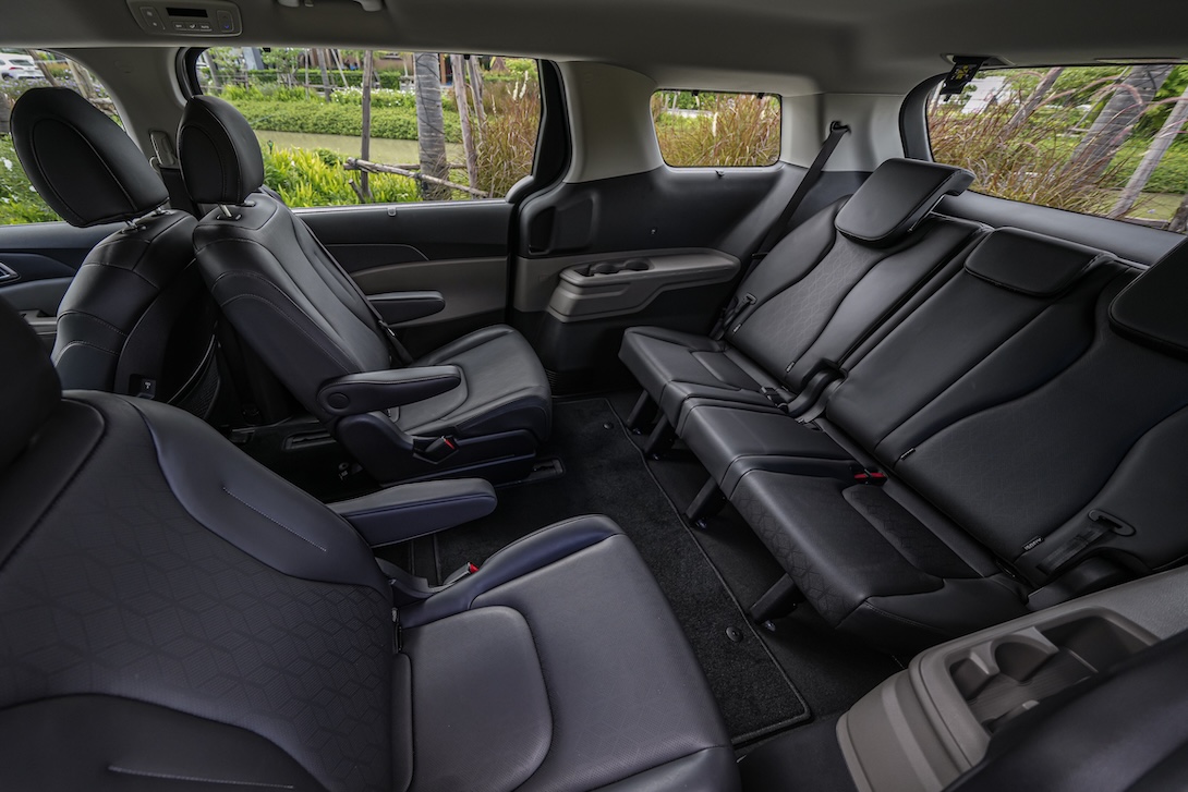 The new Kia Carnival HEV 7-seater ยังคงโดดเด่นในเรื่องความกว้างขวางสำหรับทั้งผู้โดยสารและสัมภาระ รวมถึงการปรับเปลี่ยนรูปแบบการจัดเรียงที่นั่งผู้โดยสารที่มีความยืดหยุ่น โดยถือเป็นรถ MPV ที่รองรับผู้โดยสารได้สูงสุด 7 ที่นั่ง พร้อมด้วยสัมภาระของทุกคนได้อย่างสะดวกสบายด้วยรถคันเดียว เบาะนั่งแถวสามมาพร้อมฟังก์ชันพับราบ ที่เป็นการสร้างพื้นที่บรรทุกแบบเรียบ