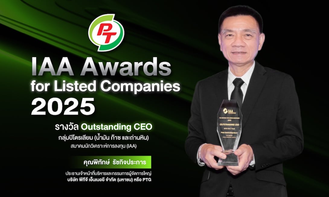นายพิทักษ์ รัชกิจประการ ประธานเจ้าหน้าที่บริหารและกรรมการผู้จัดการใหญ่ บริษัท พีทีจี เอ็นเนอยี จำกัด (มหาชน) (PTG) เข้ารับรางวัล IAA Awards for Listed Companies 2025 สาขา “Outstanding CEO” ประเภทกลุ่มอุตสาหกรรมปิโตรเลียม (น้ำมันและก๊าซ) จากการเสนอชื่อและให้คะแนนของนักวิเคราะห์และผู้จัดการกองทุนของบริษัทหลักทรัพย์ ซึ่งจัดโดยสมาคมนักวิเคราะห์การลงทุน (IAA) เพื่อสะท้อนการบริหารงานดีเด่น รวมถึงจรรยาบรรณ และบรรษัทภิบาลในการดำเนินธุรกิจ ทั้งยังสามารถนำพาองค์กรให้เติบโตก้าวหน้าอย่างยั่งยืน