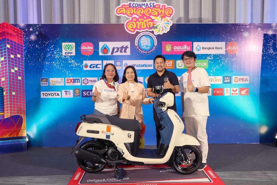 นายปิยะพงษ์ หวังใจสุข ผู้จัดการ 2 แผนกประชาสัมพันธ์ และอินฟลูเอนเซอร์ บริษัท ไทยยามาฮ่ามอเตอร์ จำกัด ถ่ายภาพการส่งมอบรถจักรยานยนต์ยามาฮ่า FAZZIO Hybrid Connected มูลค่า 52,500 บาท ให้กับนางสาวดวงพร อุดมทิพย์ นายกสมาคมผู้สื่อข่าวเศรษฐกิจ พร้อมด้วยคณะกรรมการสมาคม ร่วมกันรับมอบเพื่อเป็นรางวัลให้กับสื่อมวลชนที่เป็นสมาชิกสมาคมผู้สื่อข่าวเศรษฐกิจ ในงาน Greed Rally Econmass 2025 โดยในกิจกรรมแรลลี่ครั้งนี้ มีการทำกิจกรรม CSR มอบสิ่งของให้กับศาลเจ้า และศูนย์ส่งเสริมทักษะชีวิตบุคคลออทิสติก ชลบุรี ก่อนเข้าจุดฟินิช ณ โรงแรมไบรท์ตัน แกรนด์ & คอนเวนชั่น พัทยา