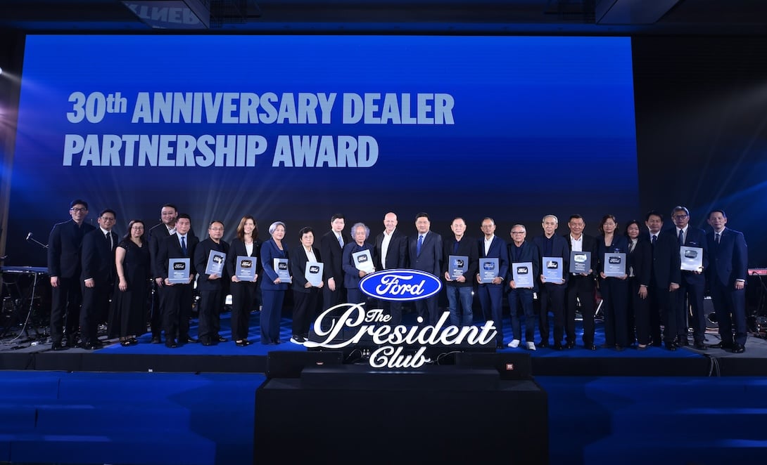 พร้อมกันนี้ ฟอร์ด ประเทศไทย ได้จัดพิธีมอบรางวัลอันทรงเกียรติ The President Club Rewards เพื่อเชิดชูเกียรติและแสดงความยินดีกับผู้จำหน่ายทั่วประเทศที่ได้รับรางวัลผลงานยอดเยี่ยม จากการดำเนินธุรกิจตามมาตรฐานของฟอร์ด สะท้อนความมุ่งมั่นในการยกระดับมาตรฐานด้านการขายและการบริการลูกค้าอย่างต่อเนื่อง นอกจากนี้ ในโอกาสพิเศษของหมุดหมายความเป็นพันธมิตร ได้มอบรางวัล “30th Anniversary Dealer Partnership” ให้แก่ผู้จำหน่ายจำนวน 13 แห่ง เพื่อยกย่องความร่วมมือระยะยาวและขอบคุณในฐานะพันธมิตรที่ร่วมสร้างการเติบโตอย่างมั่นคงมาด้วยกันตลอด 30 ปี ที่ผ่านมา