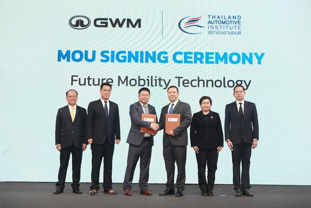 ในพิธีลงนามครั้งนี้ เวย์น โจว กรรมการผู้จัดการ ทำหน้าที่เป็นผู้แทนของ GWM (Thailand) ในการลงนาม โดยมีปาร์คเกอร์ ฉือ ประธาน GWM ตลาดต่างประเทศ และ นายครรชิต ไชยสุโพธิ์ รองประธานฝ่ายกิจการองค์กรและรัฐกิจสัมพันธ์ ร่วมเป็นสักขีพยาน ขณะที่ฝ่ายสถาบันยานยนต์นำโดย คุณตรีพล บุณยะมาน รองผู้อำนวยการสถาบันยานยนต์ ร่วมลงนามในพิธี โดยมี นางดวงดาว ขาวเจริญ รองปลัดกระทรวงอุตสาหกรรม เป็นผู้แทนกระทรวงอุตสาหกรรมในการร่วมเป็นสักขีพยานในโอกาสดังกล่าว