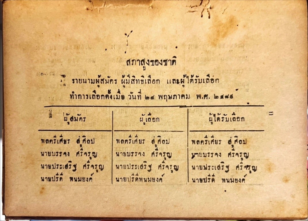 (ภาพจากหนังสือ “รวมบทความการเมือง” ของ ไถง สุวรรณทัต {พ.ศ. 2490)  ขณะเดียวกัน สมาชิกพฤฒสภาอีกหลายท่านที่เป็นสมาชิกสภาผู้แทนราษฎรประเภทที่ 2 ก็เสนอชื่อตัวเองและเลือกตัวเองในลักษณะเดียวกันกับที่คุณปรีดีได้เสนอชื่อตัวเองและเลือกตัวเอง