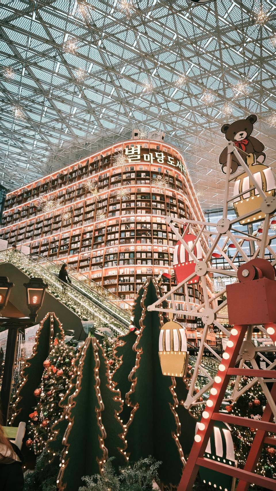 วันที่ 13 ธ.ค. เราหันมาสัมผัสด้านวัฒนธรรมสมัยใหม่ เริ่มจาก Starfield Library ในห้าง COEX Mall ห้องสมุดนี้เปิดในปี 2017 เป็นส่วนหนึ่งของโครงการส่งเสริมการอ่าน จุดไฮไลต์คือชั้นหนังสือสูง 13 เมตร บรรจุหนังสือและนิตยสารกว่า 50,000 เล่ม รวมถึงการจัดอีเวนต์อย่าง book talks และคอนเสิร์ตหนังสือ นักท่องเที่ยวสามารถนั่งอ่านฟรี ท่ามกลางการออกแบบที่ทันสมัยและแสงธรรมชาติสวยงาม แนะนำให้มาในช่วงเช้าเพื่อหลีกเลี่ยงฝูงชน