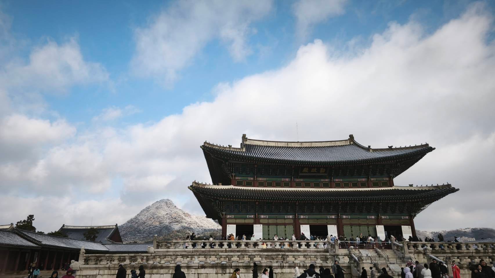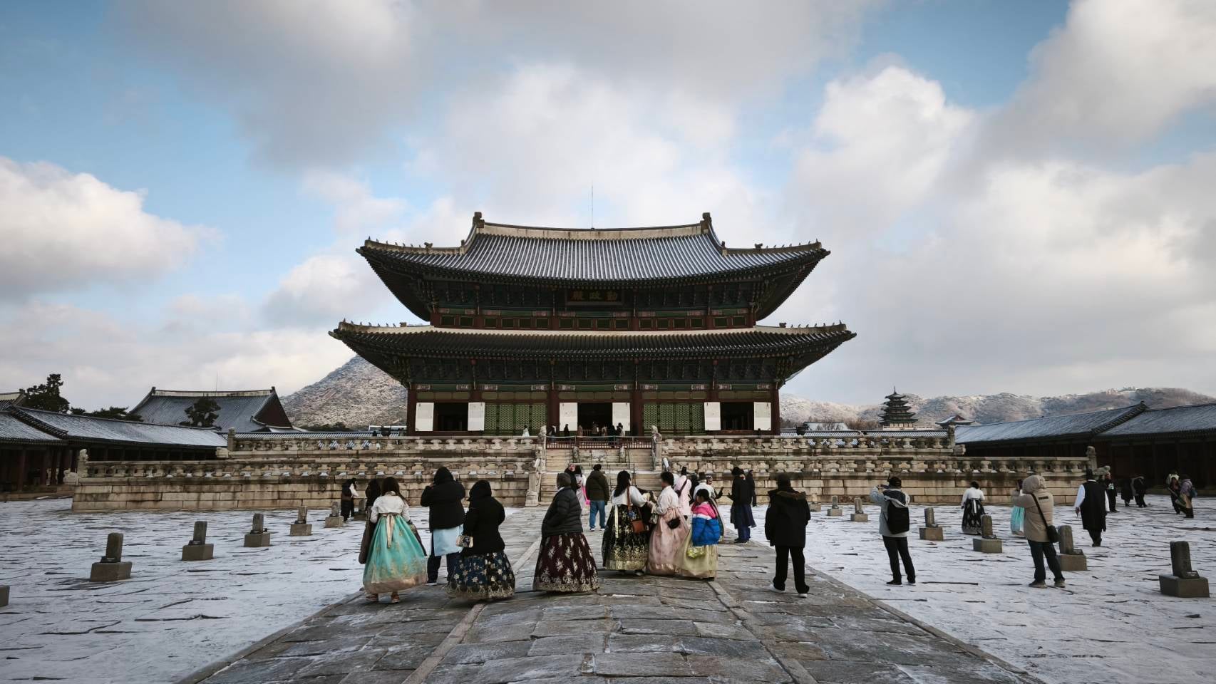 วันที่ 14 ธ.ค. เรามุ่งหน้าไปยัง Gyeongbokgung Palace วังหลวงที่ใหญ่ที่สุดใน 5 วังของโซล สร้างขึ้นในปี 1395 โดยกษัตริย์ Taejo แห่งราชวงศ์ Joseon เพื่อเป็นศูนย์กลางการปกครอง ชื่อ “Gyeongbok” แปลว่า “พระราชวังที่ได้รับพรจากสวรรค์” จุดเด่นคือ พิธีเปลี่ยนเวรยาม (changing of the guards) ที่จัดทุกวันยกเว้นวันอังคาร เวลา 10.00 น. และ 14.00 น. รวมถึงพระที่นั่ง Geunjeongjeon และสวนอันกว้างใหญ่ แม้ถูกทำลายในสมัยญี่ปุ่นบุกแต่ได้รับการบูรณะอย่างต่อเนื่อง ในปี 2025 วังนี้ยังคงเป็นสถานที่ยอดนิยม แนะนำให้นักท่องเที่ยวเช่าชุดฮันบกเพื่อเข้าฟรี และหลีกเลี่ยงวันหยุดเพื่อไม่ให้แออัด การเดินชมวังท่ามกลางอากาศหนาวทำให้รู้สึกเหมือนย้อนเวลากลับไปในอดีต โดยเฉพาะเมื่อหิมะปกคลุมหลังคาโค้ง