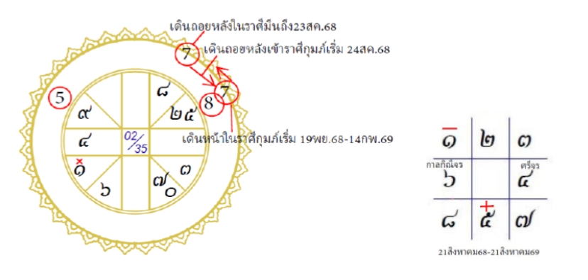 ทักษาจร-ระหว่าง 21 สิงหาคม 2568-21 สิงหาคม 2569 ตกภูมิอาทิตย์ พระพุธ (4) เป็นศรีจร-พระศุกร์ (6) เป็นกาลกิณีจร