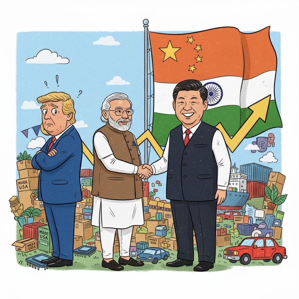 ภาษี 50% ของทรัมป์ 2.0 กลายเป็นโอกาสให้อินเดียกับจีนปรับสัมพันธ์ ทั้ง 2 ประเทศตกลงกันว่าจะลดความตึงเครียดแนวชายแดน (มีพรมแดนติดกันถึง 3,488 กิโลเมตร) ต่างฝ่ายจะระงับความขัดแย้งชั่วคราว เปิดช่องให้การค้าทวิภาคีมากขึ้น โดยเฉพาะสินค้าที่อินเดียต้องการมากอย่างเช่นแร่หายาก ส่งเสริมการเดินทาง เพิ่มเที่ยวบิน