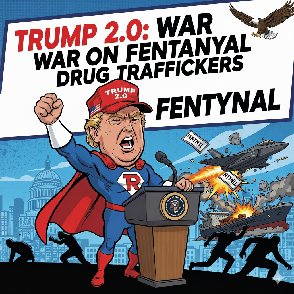 ตุลาคม 2025 ประธานาธิบดีทรัมป์กล่าวว่า ตอนนี้สหรัฐกำลังทำสงครามกับพ่อค้ายาเสพติด ตีตราว่าพวกนี้เป็นผู้ก่อการร้าย การทำสงครามสังหารคนพวกนี้เป็นการป้องกันตัวเอง พวกนี้เป็นภัยความมั่นคงแห่งชาติ ยาเสพติดทำให้คนอเมริกันเสียชีวิตปีละหลายหมื่นคน ชี้ว่าพวกนี้มีกองกำลังนอกกฎหมาย พวกค้ายาเสพติดที่หมายถึงรวมทั้งพวกที่เป็นคนต่างชาติ สหรัฐปราบปรามทำสงครามทั้งในและต่างประเทศ ไม่สนใจว่าละเมิดอธิปไตยต่างประเทศหรือไม่