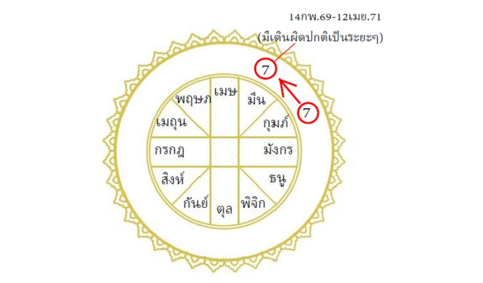 เริ่มดวงแรกก่อน ตัวทุกข์ขนาดใหญ่คือ พระเสาร์จร (7) จะย้ายจากราศีกุมภ์ที่อยู่ยาวนานมาแล้วประมาณสองปีครึ่ง เข้าเดินในราศีมีน เริ่มตั้งแต่วันวาเลนไทน์ 14 กุมภาพันธ์ 2569 และจะอยู่ในราศีนี้ยาวนานไปประมาณสองปีครึ่ง ถึง 12 เมษายน 2571 แล้วในระหว่างนี้ยังจะมีเดินผิดปกติเป็นระยะๆ ให้รับมือยากอีกด้วย