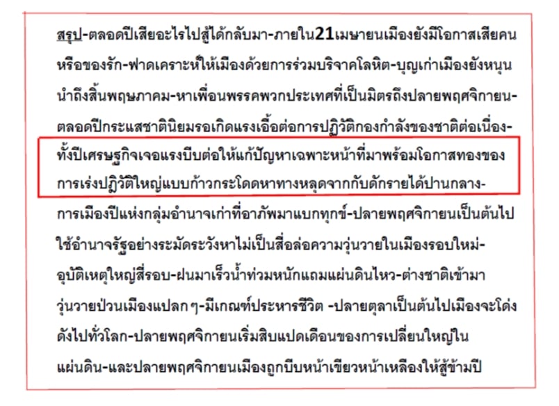 4.1 ย้อนกลับไปที่บทความแม่หมอสมัครเล่นตอนที่ 630 ชื่อตอนเศรษฐกิจ-จากระยะเผาจริงจะนำไปสู่อะไร เขียนไว้เมื่อวันศุกร์ที่ 3 เมษายน 2569 ที่ขอสกัดใจความมาเผยแพร่ซ้ำให้เห็นปาฏิหาริย์ดวงเมืองคือ