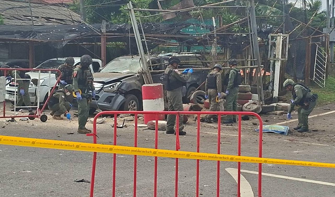 จากการตรวจสอบภาพจากกล้องวงจรปิด พบคนร้ายจำนวน 2 คน หนึ่งในนั้นขับรถจักรยานยนต์พ่วงข้างเข้ามาจอดไว้ข้างป้อมตำรวจ ก่อนซ้อนรถจักรยานยนต์อีกคันที่รอรับหลบหนีไป จากนั้นประมาณ 5 นาที จึงเกิดระเบิดเสียงดังสนั่น แรงระเบิดทำให้สะเก็ดเหล็กและชิ้นส่วนกระจายไกลกว่า 15 เมตร เจ้าหน้าที่ในพื้นที่รีบหาที่กำบังและขอกำลังเสริมเข้าควบคุมสถานการณ์