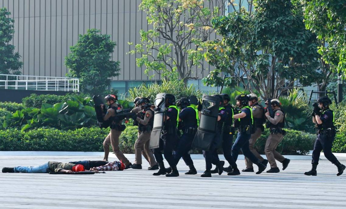 20 ก.พ. 2569 – พล.ต.อ.กิตติ์รัฐ พันธุ์เพ็ชร์ ผู้บัญชาการตำรวจแห่งชาติ (ผบ.ตร.) เป็นประธานการซักซ้อมแผนเผชิญเหตุกราดยิงของเจ้าหน้าที่ตำรวจและตอบสนองเหตุการณ์ภาคประชาชน ของกองบัญชาการตำรวจนครบาล โดยมี พล.ต.อ.ธัชชัย ปิตะนีละบุตร รอง ผบ.ตร., พล.ต.ท.สุรพงษ์ ถนอมจิตร ผู้ช่วย ผบ.ตร., พล.ต.ท.กฤษฎา กาญจนอลงกรณ์ ผู้ช่วย ผบ.ตร., พล.ต.ท.สยาม บุญสม ผู้บัญชาการตำรวจนครบาล (ผบช.น.), พล.ต.ต.ชรินทร์ โกพัฒน์ตา รอง ผบช.น., พล.ต.ต.ชัยพัชร์ ศรีประเสริฐ รอง ผบช.น. พร้อมด้วยผู้บังคับการตำรวจนครบาล 1–9, กองบังคับการสายตรวจและปฏิบัติการพิเศษ, กองบังคับการอำนวยการ, รองผู้บังคับการตำรวจนครบาล 1–9 (ฝ่ายป้องกันปราบปราม), ผู้แทนจากสำนักงานยุทธศาสตร์ตำรวจ, ผู้สังเกตการณ์จากฝ่ายรักษาความปลอดภัย World Bank/IMFและผู้สังเกตการณ์จากกระทรวงการคลัง เข้าร่วมสังเกตการณ์การซักซ้อมแผนเผชิญเหตุ ณ ห้างสรรพสินค้าวันแบงค็อก (One Bangkok)