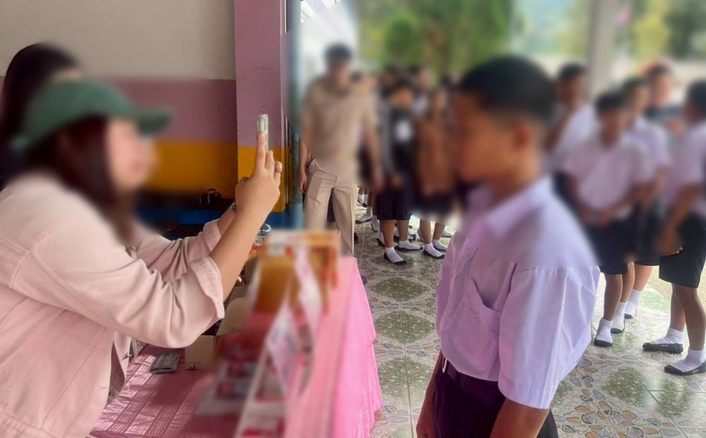 จากการตรวจสอบพบว่า มีกลุ่มบุคคลอ้างตัวเป็นพนักงานบริษัทเครือข่ายบริษัทมือถือรายใหญ่ เข้ามาขอความร่วมมือจากโรงเรียนใน อ.แม่อาย จ.เชียงใหม่ อ้างว่าจัดกิจกรรมให้ความรู้เรื่องสแกมเมอร์ และแจกซิมอินเทอร์เน็ตฟรีเพื่อการศึกษา และมีการสแกนบัตรประชาชนและใบหน้าเด็กนักเรียน คนละหลายครั้ง โดยในเคสไอดี จำนวน 8 เคสไอดี ซึ่งมีเบอร์โทรศัพท์คนร้ายที่ใช้ก่อเหตุ จำนวน 7 หมายเลข ตรวจพบภาพการลงทะเบียนเป็นของเด็กนักเรียนชาย อายุ 9, 14, 15 ปี ใส่ชุดนักเรียน ถ่ายในโรงเรียน จำนวน 3 หมายเลข พบภาพของเด็กนักเรียนหญิง อายุ 8, 13, 14,15 ปี ใส่ชุดนักเรียนของโรงเรียน จำนวน 4 หมายเลข และพบว่าเบอร์ที่ลงทะเบียนของเด็กนักเรียนหญิง อายุ 14 ปี ถูกนำไปก่อเหตุถึง 2 เคสไอดี รวมมูลค่าความเสียหายกว่า 3 แสนบาท