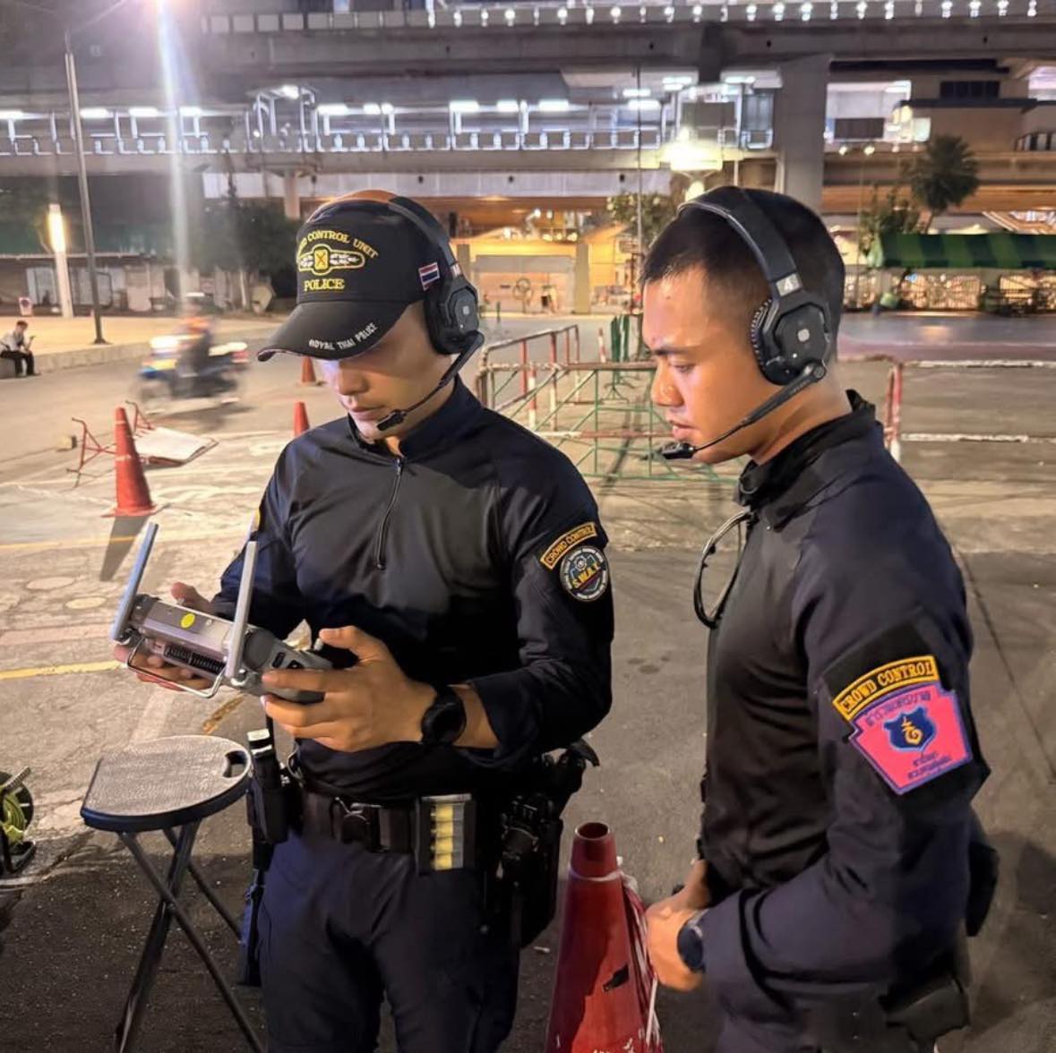 นอกจากชุดปฏิบัติการ Six Man Team ทีมตำรวจ 6 นาย ที่พร้อมดูแลเข้าช่วยเหลือประชาชนอย่างรวดเร็ว ตำรวจนครบาล ได้นำโดรนขึ้นบินเฝ้าระวังความปลอดภัยที่ระดับความสูง 250 เมตร เพื่อให้เจ้าหน้าที่ชุดร่วมสามารถประเมินสถานการณ์และบริหารจัดการพื้นที่ได้อย่างครอบคลุม