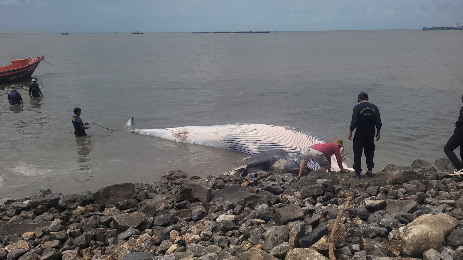 พบซากวาฬบรูด้าเพศเมีย ความยาว 8-9 เมตร น้ำหนักราว 3 ตัน เกยตื้นริมเขื่อนท้ายซอยเทศบาลบางปู 90 เจ้าหน้าที่คาดอาจถูกใบพัดเรือฟัน เสียชีวิตมาแล้วประมาณ 2 วัน เร่งผ่าชันสูตรหาสาเหตุที่แท้จริง