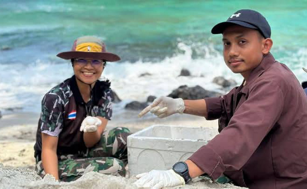 เต่ากระขึ้นวางไข่ริมชายหาดบนเกาะลังกาจิว 143 ฟอง เจ้าหน้าที่ขนย้ายไปไว้บ่อฝักที่ปลอดภัย เตรียมปล่อยกลับคืนท้องทะเล