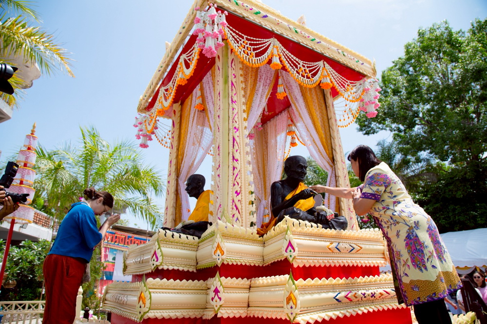 ช่างแทงหยวกสกุลช่างสงขลาที่ทำกิจกรรมทำนุบำรุงศิลปะท้องถิ่นมาอย่างต่อเนื่อง แล้วอันเชิญรูปหล่อสามสมเด็จเจ้าแห่งลุ่มทะเลสาบสงขลา สมเด็จเจ้าเกาะยอ สมเด็จเจ้าเกาะใหญ่ และสมเด็จหลวงพ่อทวดเหยียบน้ำทะเลจืด ขึ้นประดิษฐานบนเบญจาให้ประชาชนได้สรงน้ำเพื่อเป็นสิริมงคลแก่ชีวิตในโอกาสเทศกาล “วันว่าง” นอกจากจะได้สืบสานประเพณีท้องถิ่นของชาวใต้อันถือเป็นเครื่องมือในการเชื่อมรอยต่อของยุคสมัยแล้ว กิจกรรมนี้ยังได้ส่งเสริมคุณธรรม จริยธรรมในด้านความกตัญญูรู้คุณต่อปูชนียบุคคล บุพการี และผู้สูงอายุ ผู้เป็นเสมือนร่มโพธิ์ร่มไทรของชุมชนและครอบครัวอีกด้วย