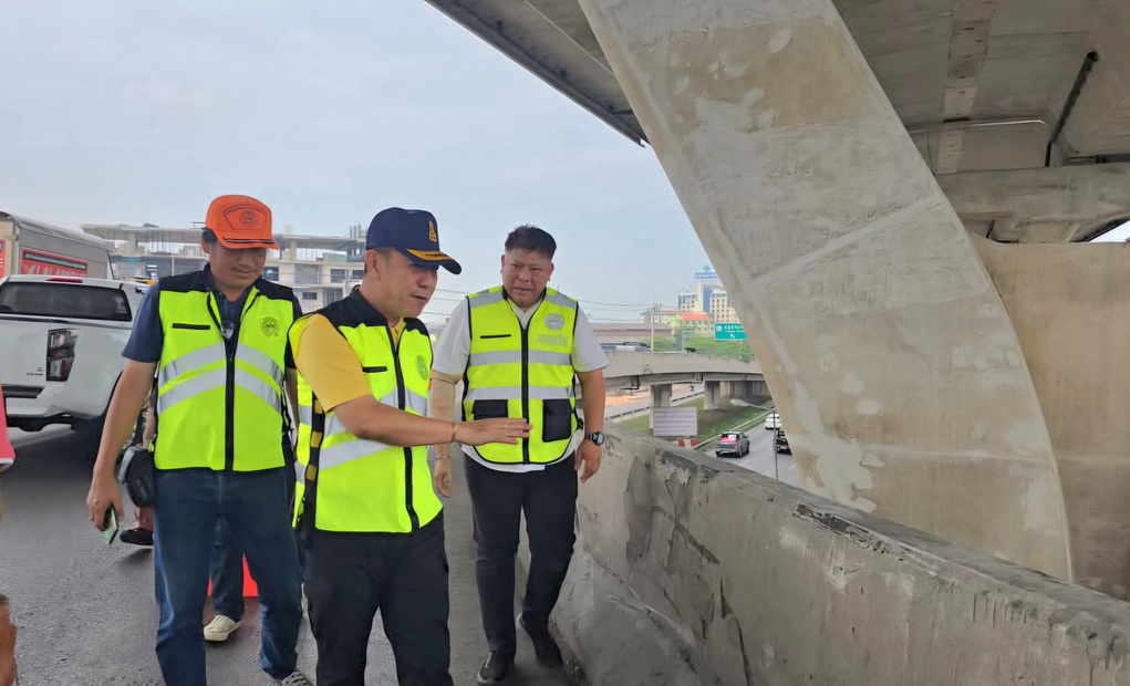 1 พฤษภาคม 2568 - นายนริศ นิรามัยวงศ์ ผู้ว่าราชการจังหวัดสมุทรสาคร พร้อมด้วย นายมนตรี วงศ์วิวัฒน์ รองผู้อำนวยการแขวงทางหลวงสมุทรสาคร และ นายปราชญ์พงศ์ เมฆนิติกุล หมวดทางหลวงเศรษฐกิจ ก็ได้ลงพื้นที่ไปดูจุดที่เกิดการกระเทาะของพื้นปูนสะพานต่างระดับกระทุ่มแบน – มหาชัย ซึ่งพาดผ่านถนนพระราม 2 จนเป็นเหตุให้มีเศษก้อนปูนตกลงไปกระแทกกับรถยนต์กระบะของนายอำนาจ ทองขำ ผู้เสียชีวิต