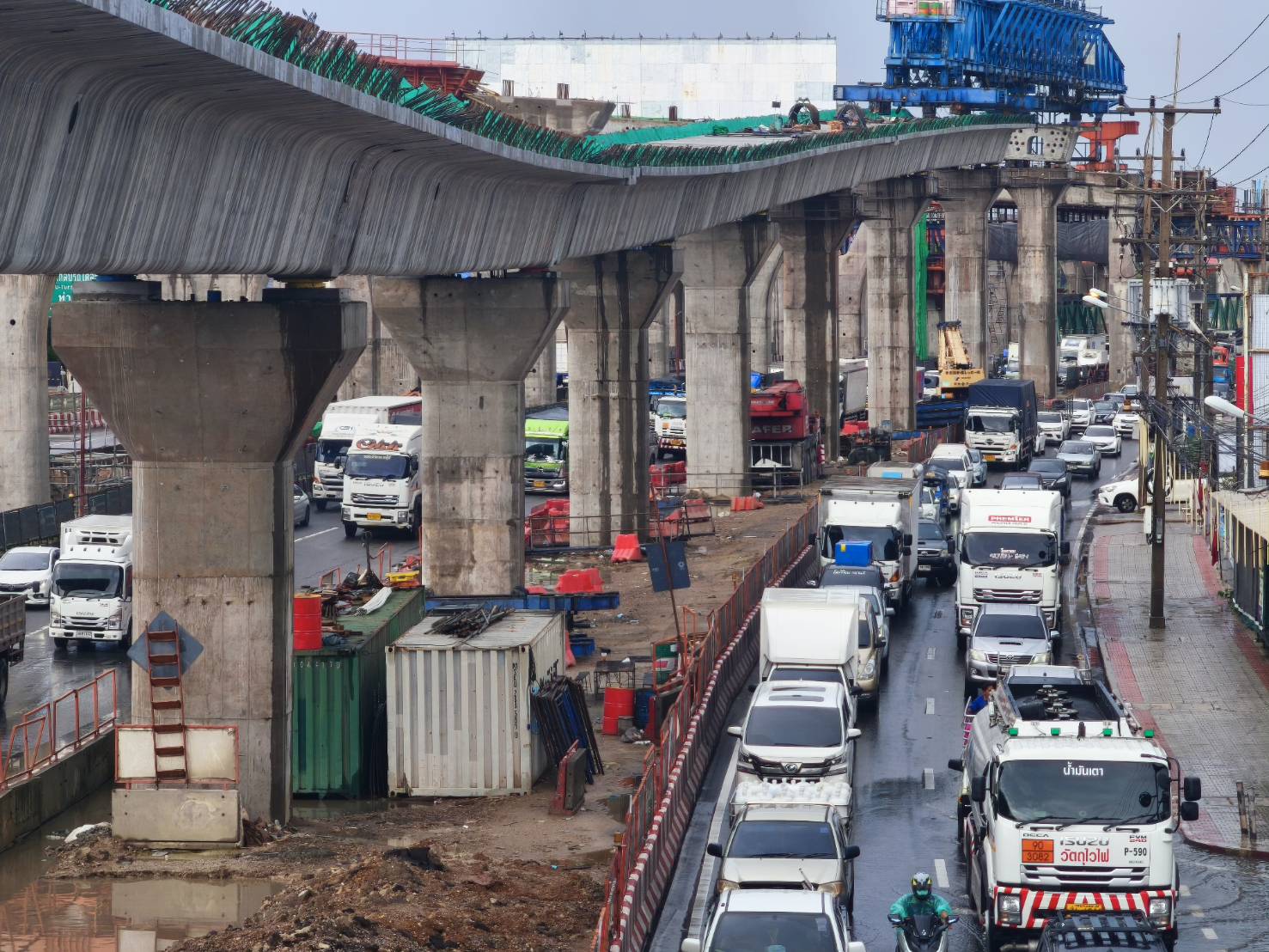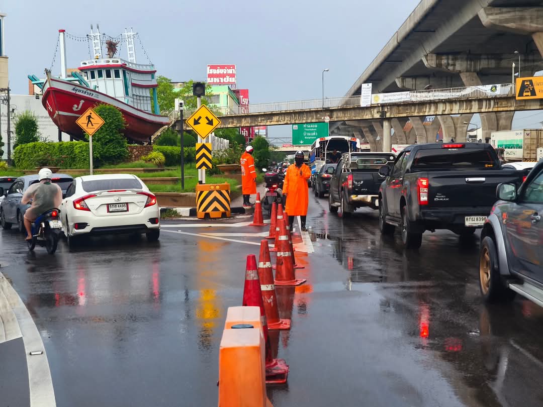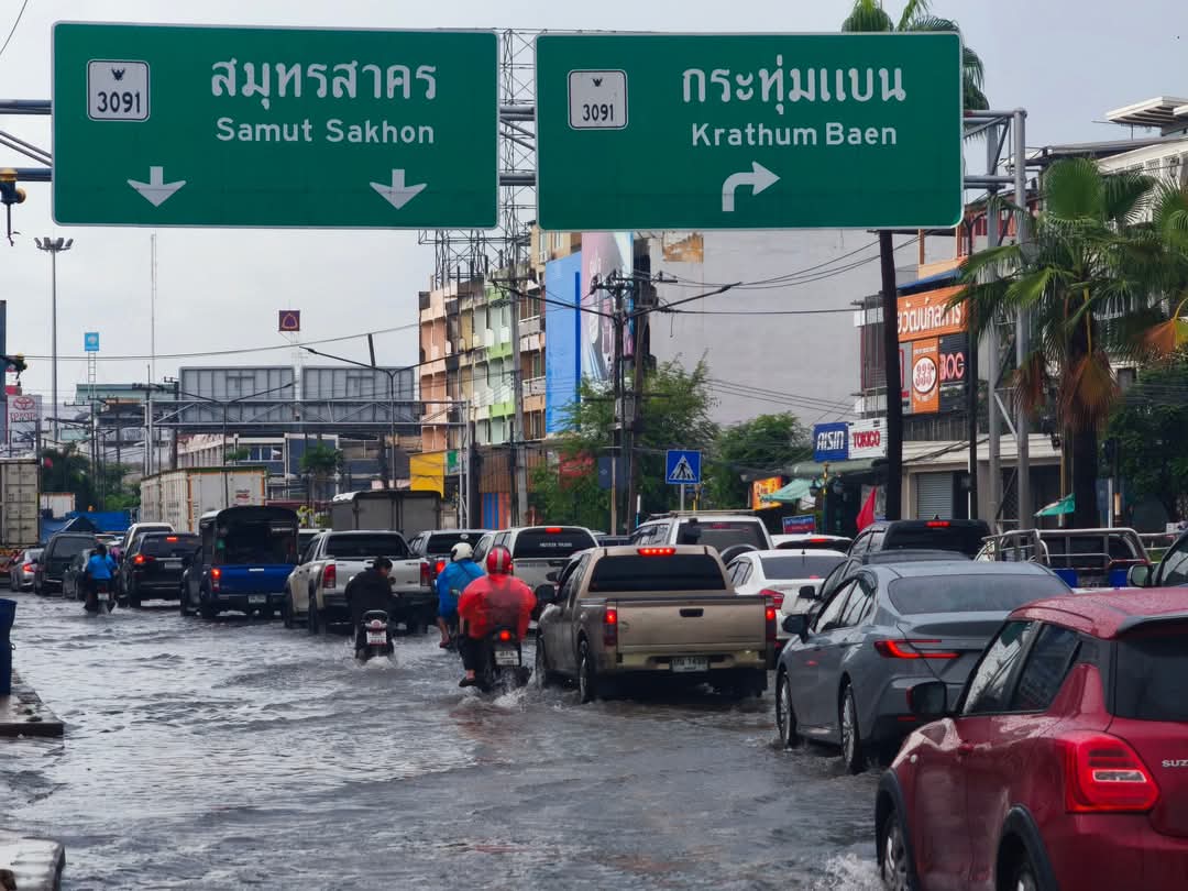 15 พฤษภาคม 2568 - เข้าสู่ฤดูฝนวันแรกจังหวัดสมุทรสาครฝนตกตั้งแต่กลางดึกยันเช้าฝนกระหน่ำแรงเป็นระยะๆบวกกับน้ำทะเลหนุนสูง ทำให้ตัวเมืองมหาชัยรถติด หนักทั่วการจราจรเป็นอัมพาตทุกเส้นทางขยายเป็นวงกว้างจนถึงถนนพระราม 2 สะพานต่างระดับมุ่งหน้า กระทุ่มแบน-พระราม 2 ตลอดจนหน้าตลาดทะเลไทย มีน้ำท่วมขัง สูงถึง 30 เซนติเมตร รถเล็กรถมอเตอร์ไซค์จอดเสียจำนวนมาก