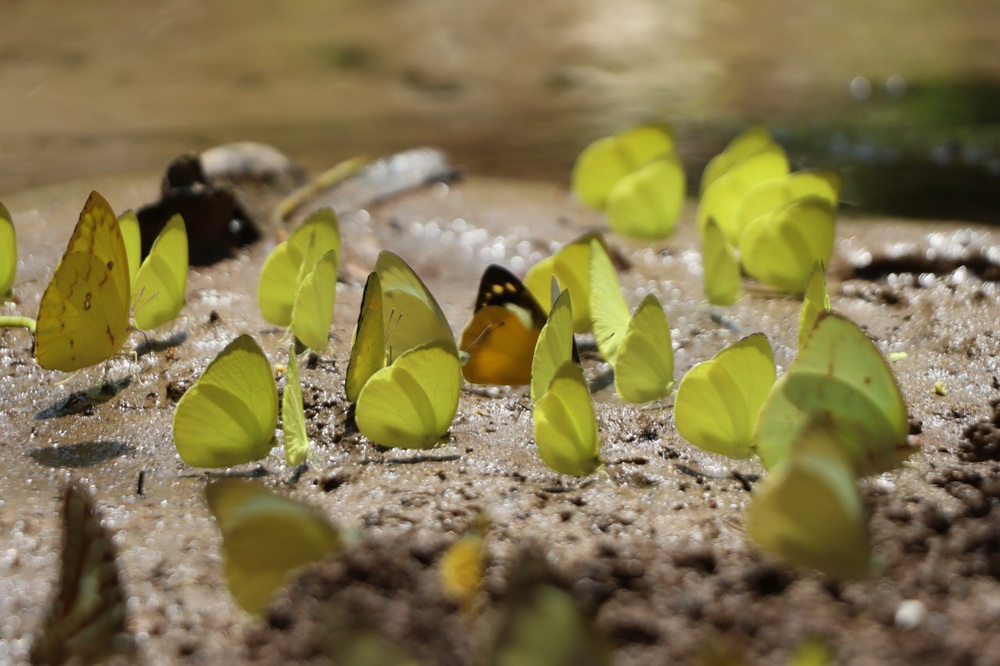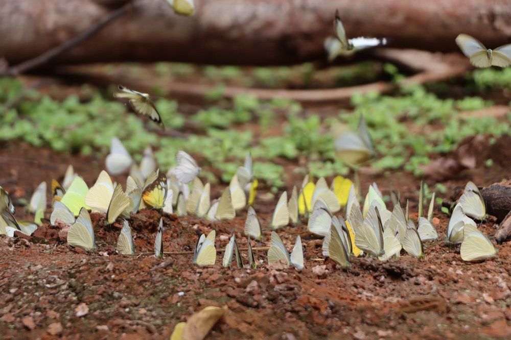 ตลอดหลายวันมานี้ กลุ่มผีเสื้อหลากหลายสายพันธุ์ โดยเฉพาะ “ผีเสื้อแกลบ” หรือที่ชาวบ้านเรียกกันอย่างคุ้นเคยว่า “แมงกะบี้” ได้พร้อมใจกันออกมาบินอวดโฉมท่ามกลางความเขียวชอุ่มของป่าเขา บางส่วนรวมฝูงกันตามแอ่งน้ำ บางตัวเกาะอยู่บนผิวดินชื้นในร่มเงาของต้นไม้