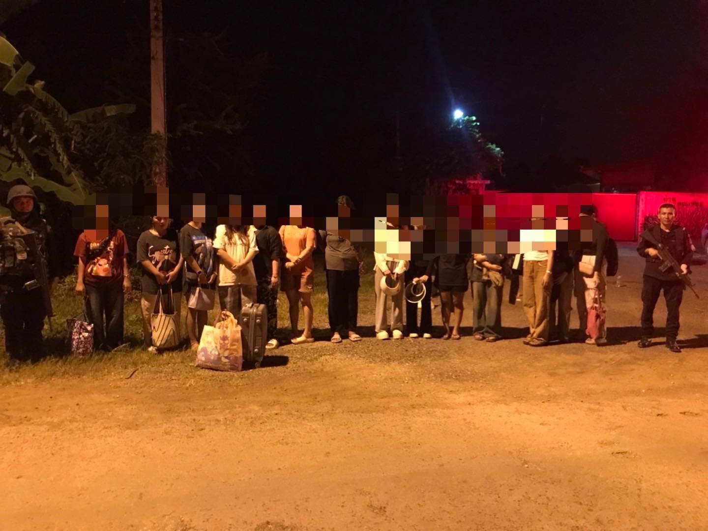 22 มิ.ย. 2568 – ชุดปฏิบัติการร่วมกองกำลังบูรพา ซึ่งประกอบไปด้วย หน่วยเฉพาะกิจอรัญประเทศ ชุดควบคุมกรมทหารพรานที่ 12 (ร้อย ทพ.1206 ), หน่วยเฝ้าตรวจชายแดนที่11 ,สภ.คลองน้ำใส,กำนัน ผู้ใหญ่บ้าน ต.คลองน้ำใส ได้รับแจ้งจากแหล่งข่าวว่ามีการลักลอบข้ามแดน บริเวณ บ้านแสนสุข ต.คลองน้ำใส อ.อรัญประเทศ จ.สระแก้ว จึงจัดกำลังเฝ้าตรวจ โดยเมื่อ วันที่ 20 มิ.ย.68 เวลาประมาณ 2300 เจ้าหน้าที่ได้พบกลุ่มบุคคลต้องสงสัย 23 คนกำลังเดินเท้ามุ่งหน้าชายแดนกัมพูชา ห่างจากถนนศรีเพ็ญประมาณ 300 เมตร ทันทีที่ที่แสดงตัวเข้าจับกุม เกิดเสียงปืนขึ้น3นัด(ไม่ทราบฝ่าย) เจ้าหน้าที่จึงยิงเตือน 1 นัด(ยิงขึ้นฟ้า) หลังจากควบคุมสถานการณ์ได้ สามารถควบคุมผู้ต้องหาได้จำนวน 22 คน (ชาย 8, หญิง 14) และผู้นำพา1 ราย โดยผู้นำพาคนไทยข้ามไปฝั่ง กพช. ชื่อนาย ไกร จันทร์ทา (38 ปี) บาดเจ็บที่ชายโครงซ้าย นำตัวส่งโรงพยาบาลอรัญประเทศ อาการปลอดภัย จากการสอบสวนในขั้นต้นเเยกผู้ลักลอบข้ามเเดนได้เป็น 2 กลุ่ม