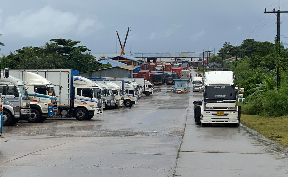 นายปิยะวุฒิ ประสิทธิเวช ลูกชายนางสำราญ ประสิทธิเวช เจ้าของท่าเรือ กล่าวว่า รถบรรทุกตู้คอนเทนเนอร์ที่มีมากกว่า 120-150 ตู้เข้ามาส่งสินค้าลงเรือขนส่งที่มี 7 ลำ เพื่อลำเลียงไปขึ้นที่ท่าเรือสีหนุวิล ในจังหวัดกัมโปงโสม ซึ่งใช้เวลา 1 วัน และกลับอีกเกือบ 1 วัน ซึ่งช่วงนี้มีลมพายุ ทำให้ไม่สามารถขนส่งสินค้าทางทะเลได้เร็วเหมือนก่อน และรถบรรทุกตู้คอนเทนเนอร์ก็เพิ่มขึ้นในระยะนี้ เนื่องจากที่ผ่านมา การสั่งซื้อสินค้าผ่านแดนจากต่างประเทศเพื่อส่งไปยังกัมพูชามีมากและหยุดส่งไประยะหนึ่ง ทำให้ผู้ประกอบการต้องเร่งดำเนินการให้เร็ว ทำให้การขนส่งสินค้าต้องแออัดไปในระยะนี้ และสินค้าส่วนใหญ่ก็มาจากประเทศจีนเป็นหลัก ของไทยก็มีบ้าง แต่ยังไม่มากนัก