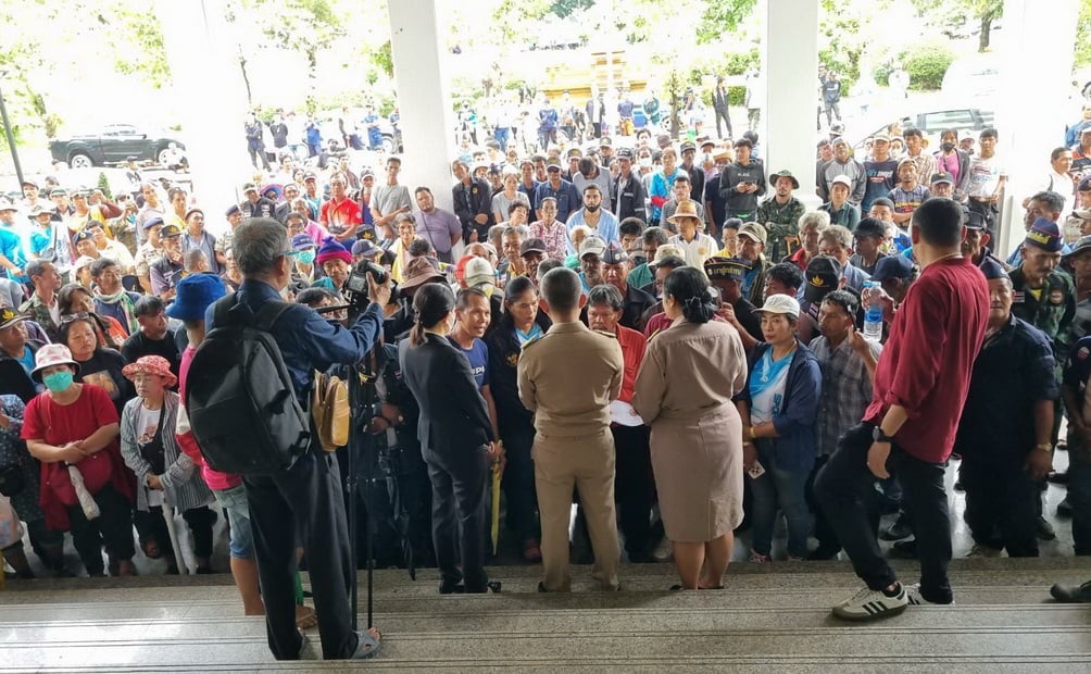 แกนนำชาวบ้านได้กล่าวก่อนยื่นหนังสือว่า ช่วง 2 เดือนที่ที่ผ่านมาบรรดาชาวบ้านและกลุ่มทหารผ่านศึก รวมตัวกันเรียกร้องให้หน่วยงานเกี่ยวข้องเร่งดำเนินการตามกฎหมายกับสวนปาล์มกว่า 23,000 ไร่ ในป่าสงวนแห่งชาติสลุย-รับร่อ ซึ่งหมดสัมปทานนาน 10 ปีแล้ว แต่หน่วยงานรัฐกลับเกี่ยร์ว่างไม่ดำเนินการเข้าไปบริหารจัดการในที่ดินหมดสัมปทาน มาใช้ประโยชน์สาธารณะ และจัดสรรให้กับประชาชนได้ทำกิน แต่กลับปล่อยให้กลุ่มนายทุน เจ้าหน้าที่รัฐ นักการเมือง รวมหัวกันเก็บเกี่ยวผลประโยชน์ออกมาขายปีละนับพันล้านบาท