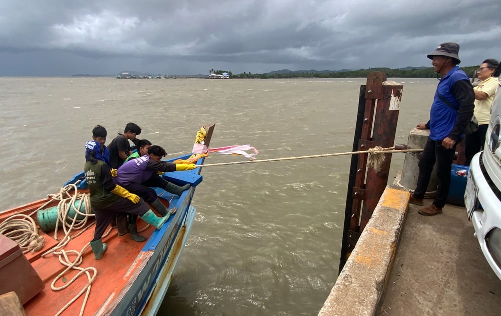 21 กรกฎาคม 2568 - ที่บริเวณท่าเรืออนุสรณ์สถานยุทธนาวี ต.แหลมงอบ อ.แหลมงอบ จ.ตราด ขณะที่เรือพาโนรามา เรือขนส่งสินค้าจากต.เกาะหมาก อ.เกาะกูด จ.ตราดมาเทียบท่าเพื่อนำขี้ยางพาราจำนวนกว่า 10 ตัน และสินค้าอื่นๆมาขึ้นท่าเรือเพื่อขายให้กับพ่อค้า ซึ่งระหว่างนั้น ฝนกำลังจะตกและมีเมฆฝนพัดจากเกาะช้างมายังฝั่งอำเภอแหลมงอบ ซึ่งคนงานเกือบ 10 คนกำลังเร่งขนถุงใส่ขี้ยางขึ้นมาชั่ง ท่ามกลางลมที่พัดเข้ามาแรง และเรือสินค้าถูกคลื่นซัดออกจากท่าเรือทำให้ต้องช่วยกันดึงกลับมาเทียบท่า
