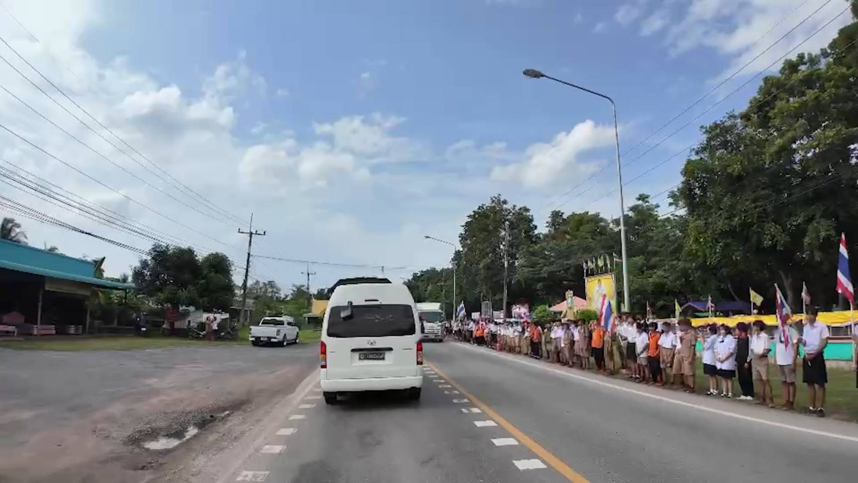 ทันทีที่ขบวนรถทหารเคลื่อนผ่านเขต อ.สีชมพู ภาพที่สะเทือนใจที่สุดคือ ประชาชน พ่อค้าแม่ค้า นักเรียน และชาวบ้านนับร้อย ยืนเรียงรายสองฝั่งถนนโบกธงชาติไทยอย่างพร้อมเพรียง เพื่อแสดงความเคารพแด่ผู้กล้าที่เสียสละเพื่อชาติ