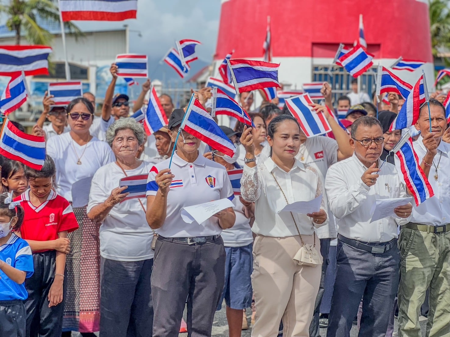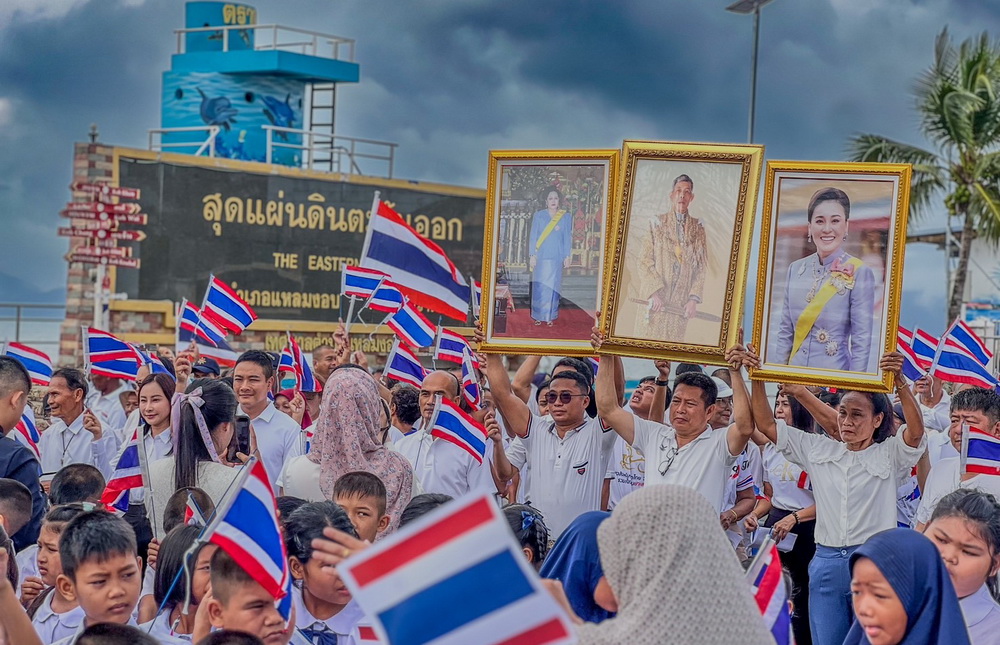 "ชาวอำเภอแหลมงอบ" แสดงพลังใจเป็นหนึ่งเดียวกันเพื่อแสดงความรักชาติและสร้างความสามัคคีของชาวไทยต่อเหตุการณ์สู้รบ