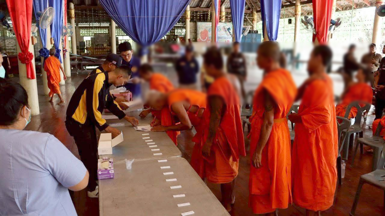 กอ.รมน.พิจิตร-ฝ่ายปกครอง-ตำรวจจู่โจมวัดหลวงพ่อเงินบางคลานตรวจหาสารเสพติดพบพระฉี่สีม่วงจับสึกทันที