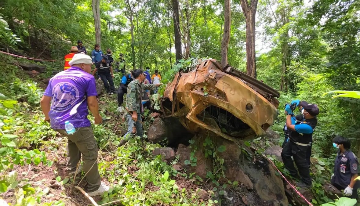การพบซากรถดังกล่าวเกิดขึ้นโดยบังเอิญ ระหว่างที่เจ้าหน้าที่เข้าช่วยเหลือ รถบรรทุกพ่วงบรรทุกไม้ยูคาลิปตัส ที่เบรกแตกและตกเหวเมื่อวันที่ 6 สิงหาคมที่ผ่านมา โดยขณะกู้ภัยลงพื้นที่ช่วยเหลือ พบซากรถเก๋งอีกคันหนึ่งอยู่ลึกลงไปกว่า 20 เมตรในสภาพ พลิกหงาย ล้อชี้ฟ้า ไฟไหม้ทั้งคัน มีเถาวัลย์ขึ้นปกคลุมแน่นหนา