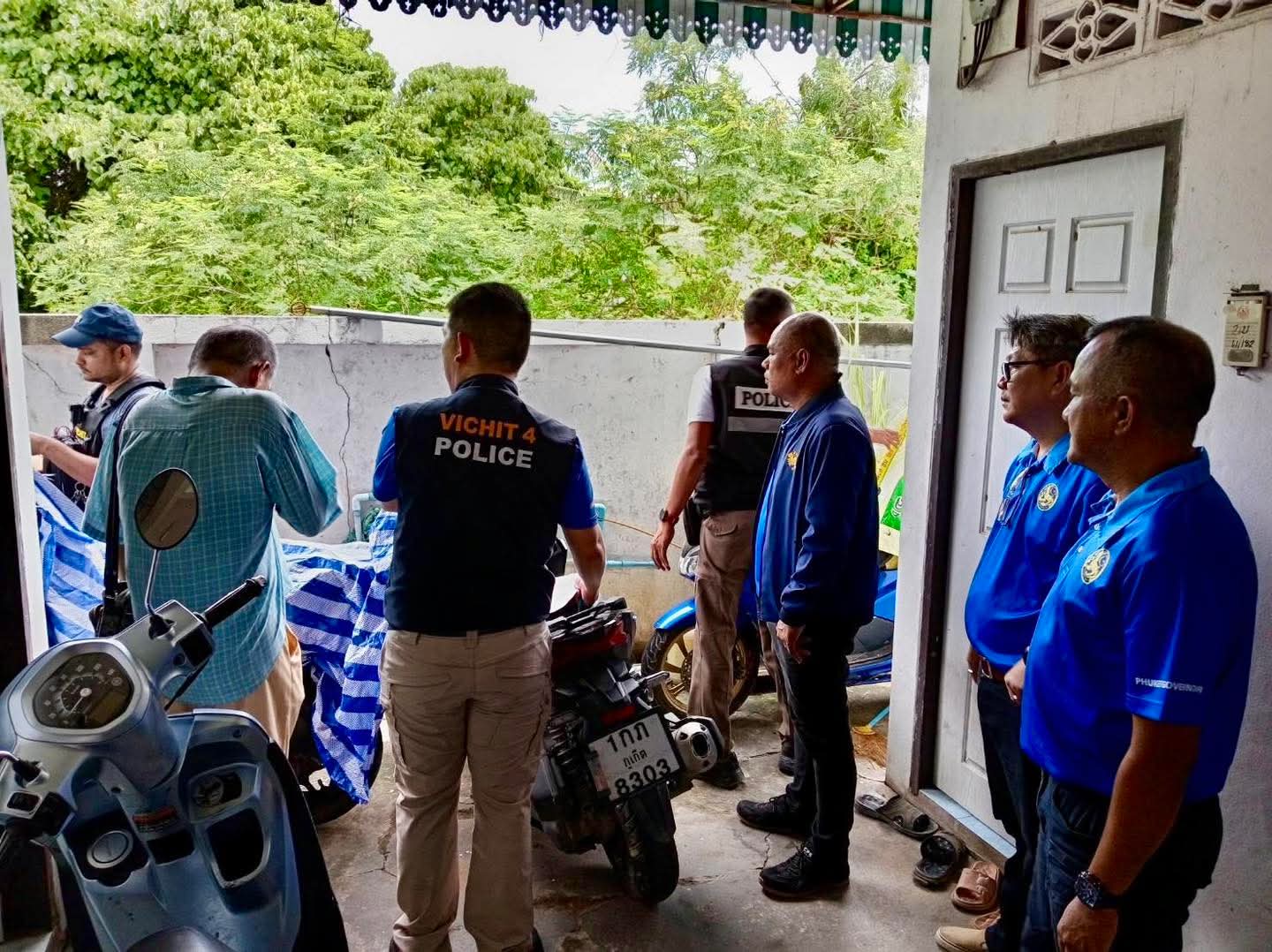 ก่อนการจับกุม พ.ต.อ.สมศักดิ์ ทองเกลี้ยง ผกก.สภ.วิชิตได้รับการร้องเรียนจากชาวบ้านว่ามีรถยนต์จอดทิ้งไว้เป็นเวลานานที่ริมถนนภายในซอยเจริญลาภ ต.วิชิต อ.เมืองจ.ภูเก็ต โดยไม่ติดแผ่นป้ายทะเบียนหน้า-หลังจำนวนหลายคัน และมีรถจักรยานยนต์จอดซุกซ่อนคลุมผ้าอยู่หน้าห้องเช่าและในห้องเช่าภายในซอยเจริญลาภ ต.วิชิต อ.เมืองจ.ภูเก็ต จึงเชื่อว่าอาจเป็นรถที่ผิดกฎหมาย จึงได้สั่งการให้ พ.ต.ท.ธีระวัฒน์ อำนาจเจริญยิ่ง รอง ผกก.สส.สภ.วิชิตนำกำลังชุดสืบสวนไปตรวจสอบ ปรากฎว่าพบรถยนต์จอดอยู่ริมถนนไม่ติดแผ่นป้ายทะเบียนหน้า-หลังตามที่ประชาชนได้แจ้งเบาะแสมาจำนวน 6 คัน ตรวจสอบหน้าห้องเช่าดังกล่าว พบรถจักรยานยนต์จอดคลุมผ้าซุกซ่อนอยู่บริเวณหน้าห้องเช่าอีกจำนวน 6 คัน